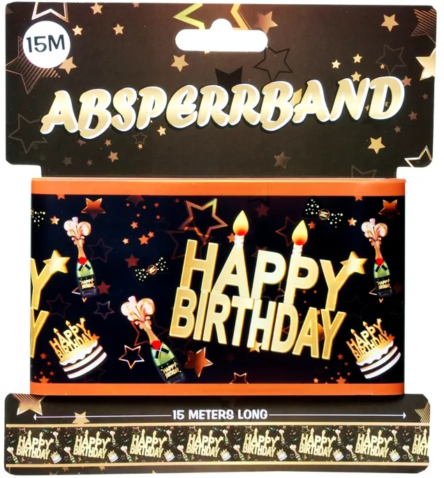 Absperrband “Happy Birthday” Schwarz/Gold – Der festliche Rahmen für deine Party