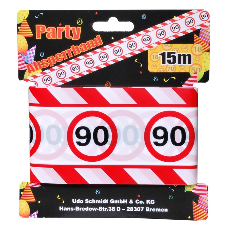 Der 90. Geburtstag ist ein besonderer Tag, den man gebührend feiern sollte. Darum ist dieses Absperrband aus wetterfestem Material perfekt dazu geeignet um auf diesen besonderen Tag hinzuweisen.