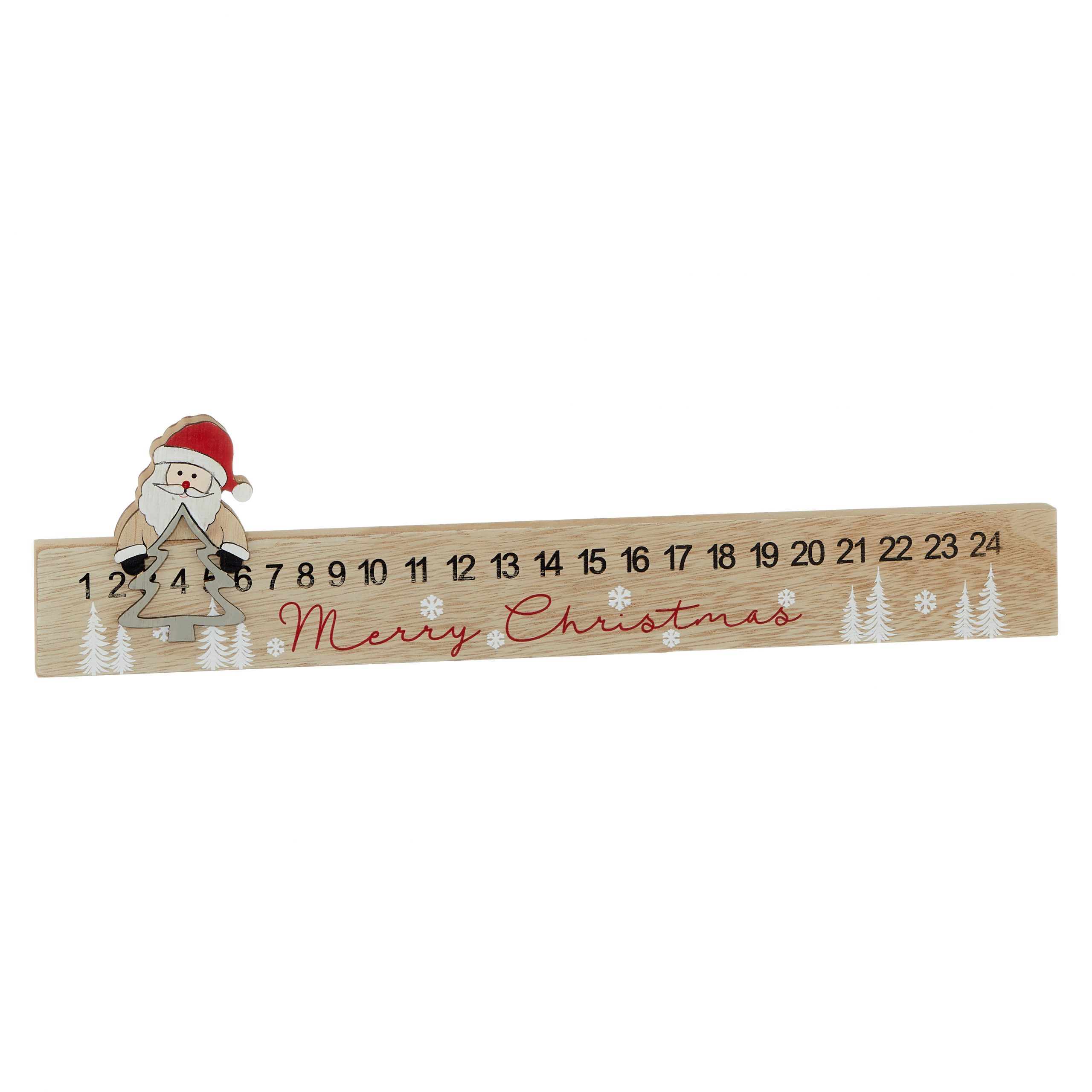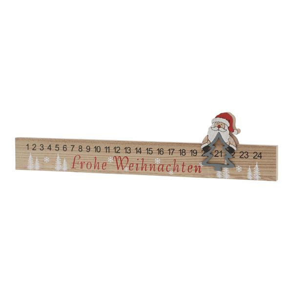 Der Adventskalender aus Holz ist eine innovative Möglichkeit, die Tradition des Adventskalenders nachhaltiger zu gestalten. Statt Einmal-Pappkalendern mit Plastikeinlage haben wir hier eine Holzleiste auf die die Zahlen 1-24 aufgedruckt sind. Auf die Leiste aufgesetzt ist eine Weihnachtsmannfigur auf einem Tannenbaum, welcher durch Verschieben den aktuellen Tag anzeigt. Wenn Sie dazu für jeden Tag eine Kleinigkeit in – beispielsweise – weihnachtlichen Pappschachteln verpacken, haben Sie einen Adventskalender den Sie jedes Jahr wiederverwenden können und den Sie so wohl kaum ein zweites Mal finden.