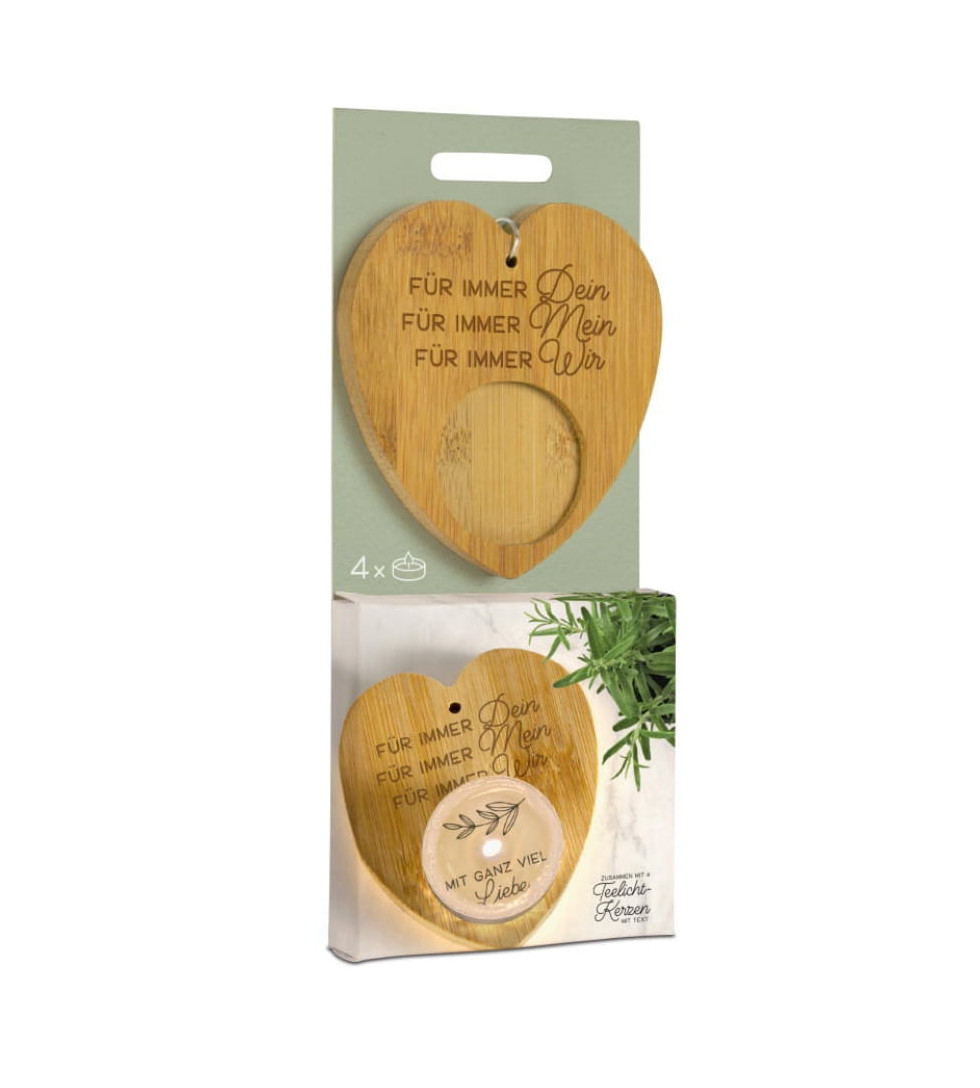 Bambusherz mit Teelicht “Mit ganz viel Liebe”