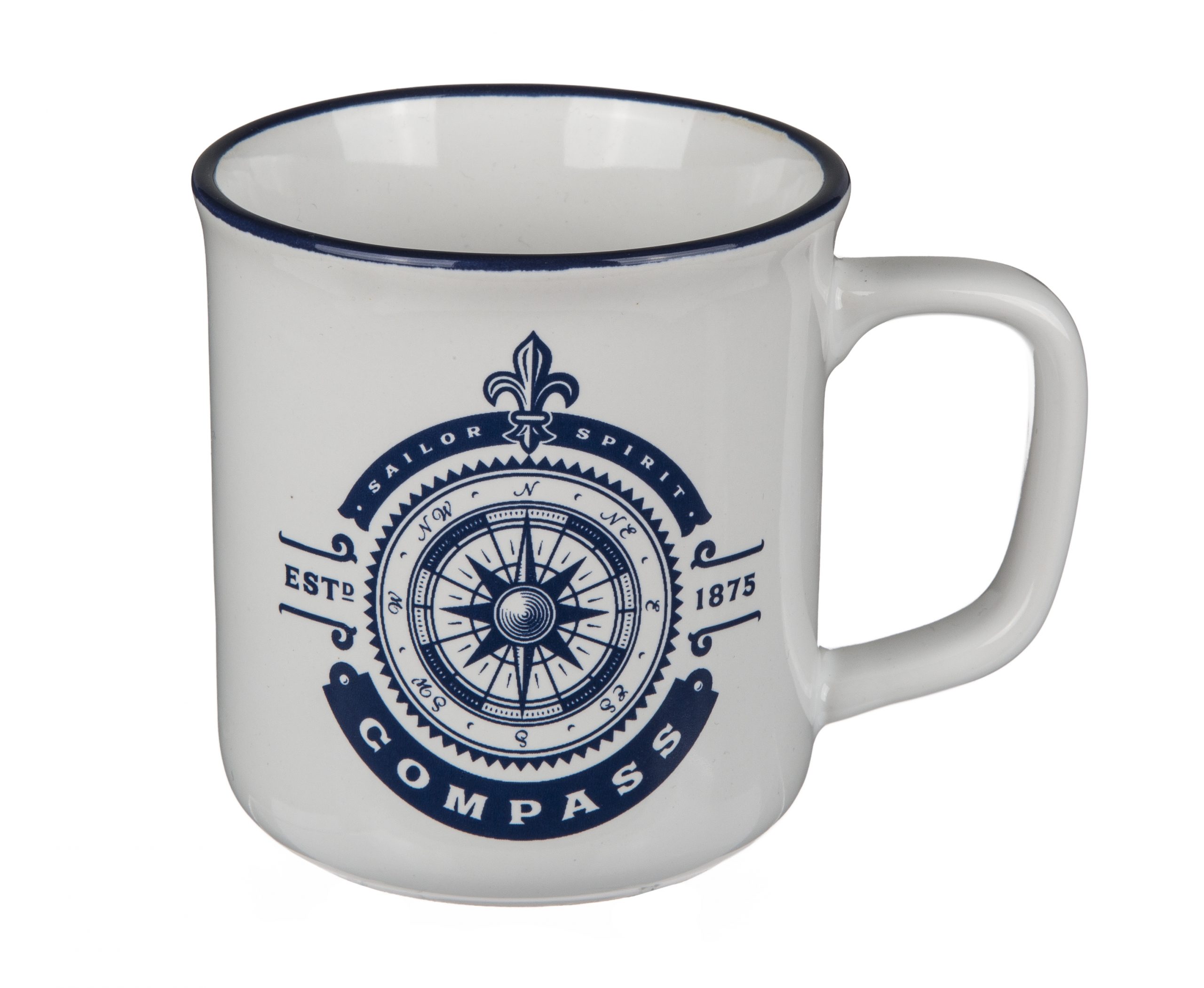 Ein toller Becher mit maritimen Kompass-Motiv in nostalgischer Emaille Optik und schönem Schriftzug.