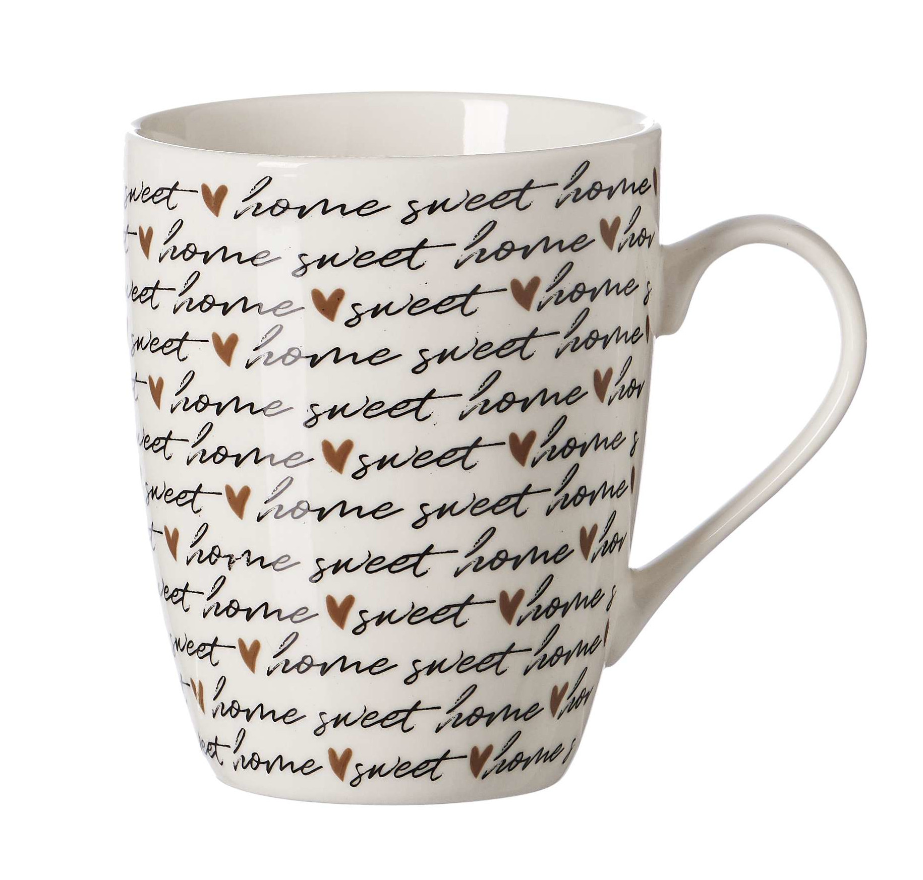 Dann ist dieser Becher mit dem rundum wiederholenden Schriftzug “Home Sweet Home” und den kleinen Herzen vielleicht genau der Richtige für Sie. Der Becher besteht aus robustem Porzellan und ist Mikrowellen- sowie Spülmaschinengeeignet.