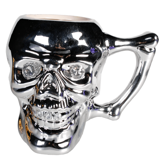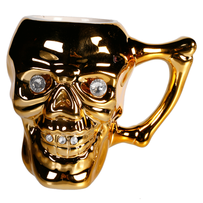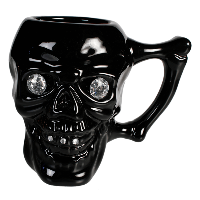 Das auffällige Design der Tasse in Form eines Totenschädels und die Kristallsteine, welche die Augen und Zähne zieren, machen diese Tasse zu einem absoluten Hingucker. Sie ist der perfekte Begleiter für alle, die gerne auffallen und nicht auf den Mainstream setzen. Es ist ein unverzichtbares Accessoire für alle Fans des Gothic-Stils und eine tolle Geschenkidee für Freunde und Verwandte.