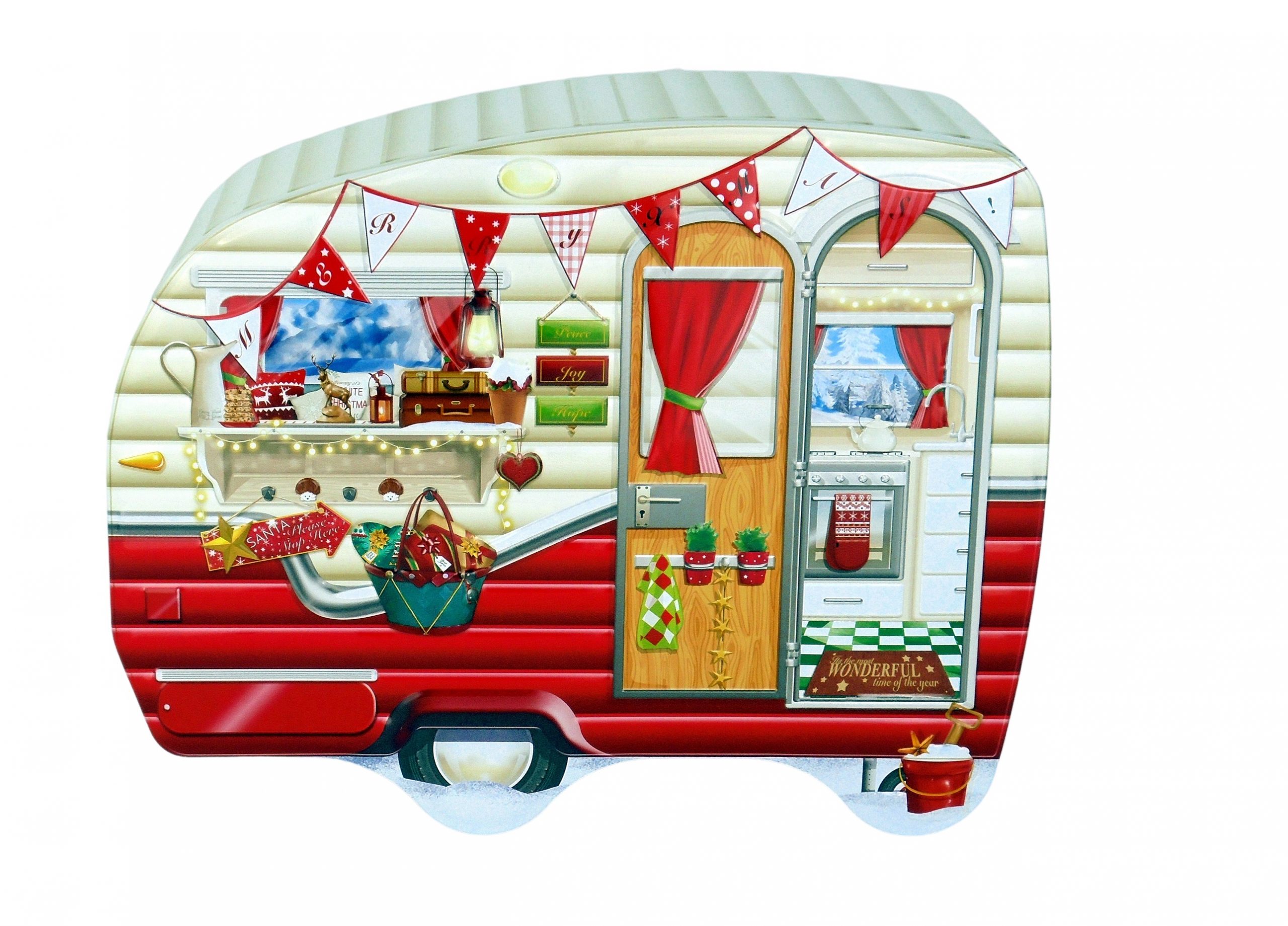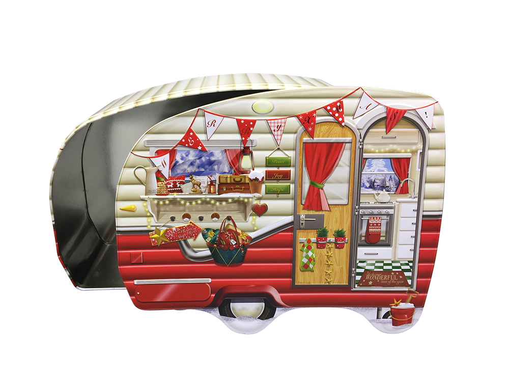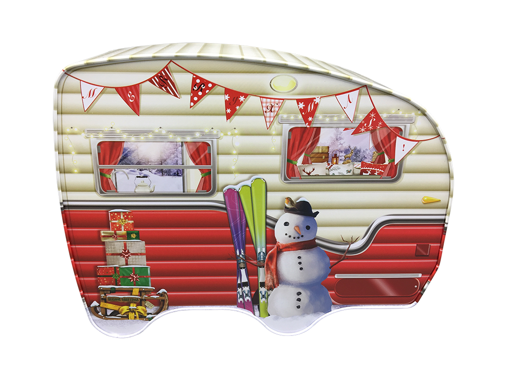 Blech-Keksdose “Wohnwagen zu Weihnachten” – Nostalgisches Design für die festliche Saison