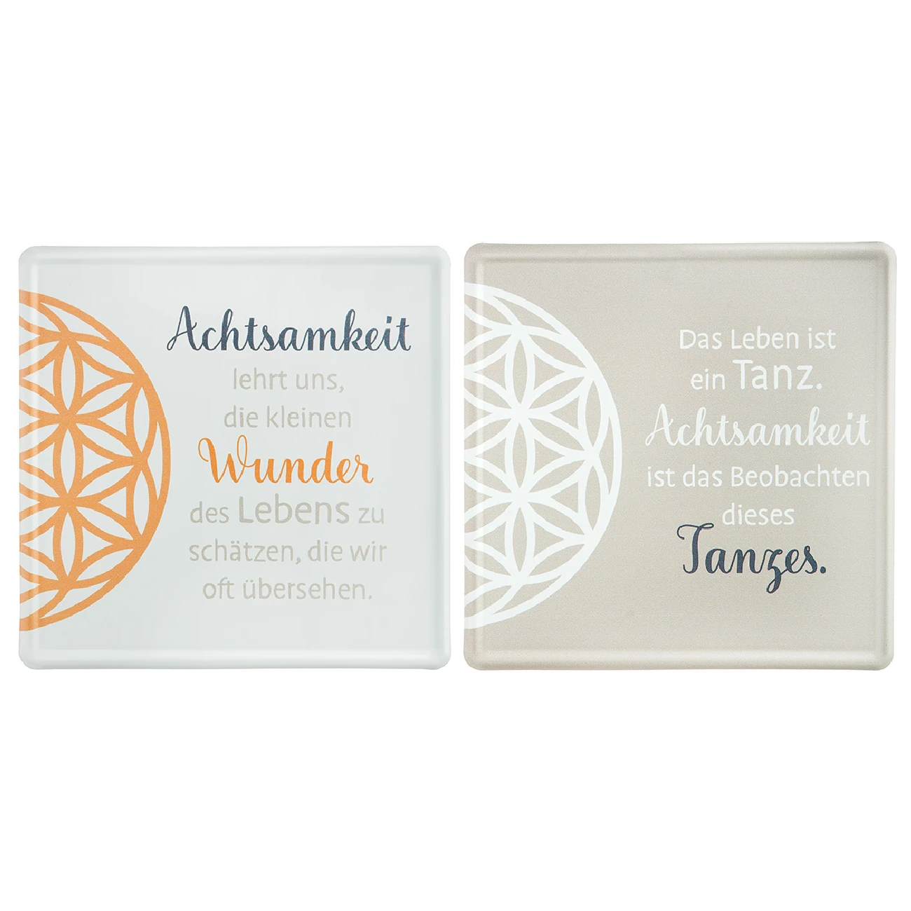 Die Blechschild “Achtsamkeit”-Kollektion zeigt die “Blume des Lebens” als zentrales Motiv, gestaltet in einer sanften Farbgebung in Beige, Weiß, Grau und Orange. Die harmonische Farbpalette fügt sich dezent, aber stilvoll in jede Einrichtung ein – ob modern, natürlich oder klassisch. Die quadratische Form mit 19 x 19 cm ist kompakt und dennoch präsent. Dank der praktischen Aufhängung auf der Rückseite lassen sich die Schilder ganz einfach an der Wand befestigen – einzeln oder im Duo, je nach Raum und Stimmung.