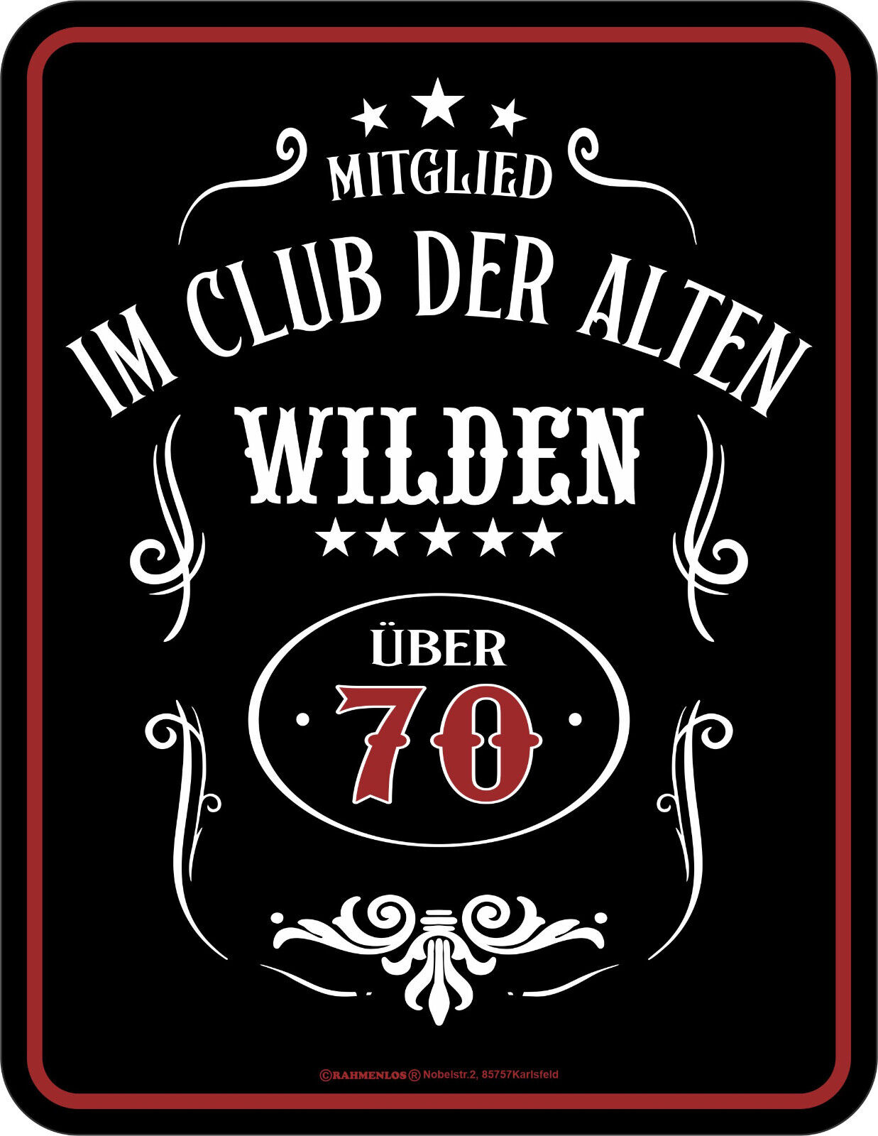 Blechschild “Über 70 – Club der Wilden” von RAHMENLOS®