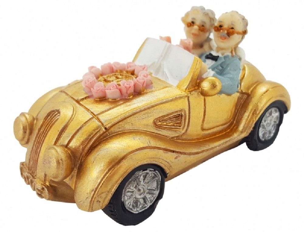Dieses kunstvolle Goldhochzeit-Brautpaar im goldenen Oldtimer ist mehr als nur eine Skulptur. Es ist ein Symbol der Liebe, der Beständigkeit und der unendlichen Möglichkeiten, die das Leben zu bieten hat. Eine Erinnerung daran, dass wahre Liebe alle Herausforderungen überwinden kann und dass das Glück im Zusammensein liegt.