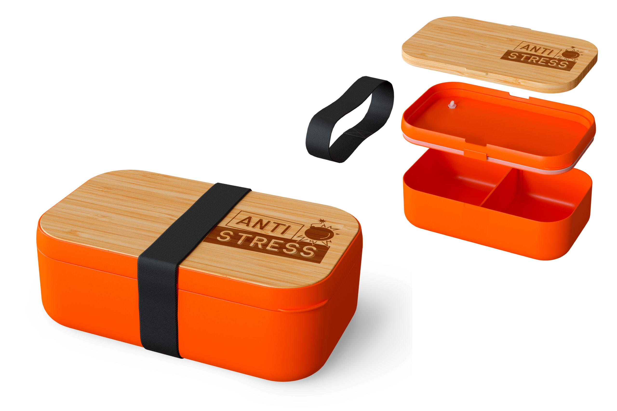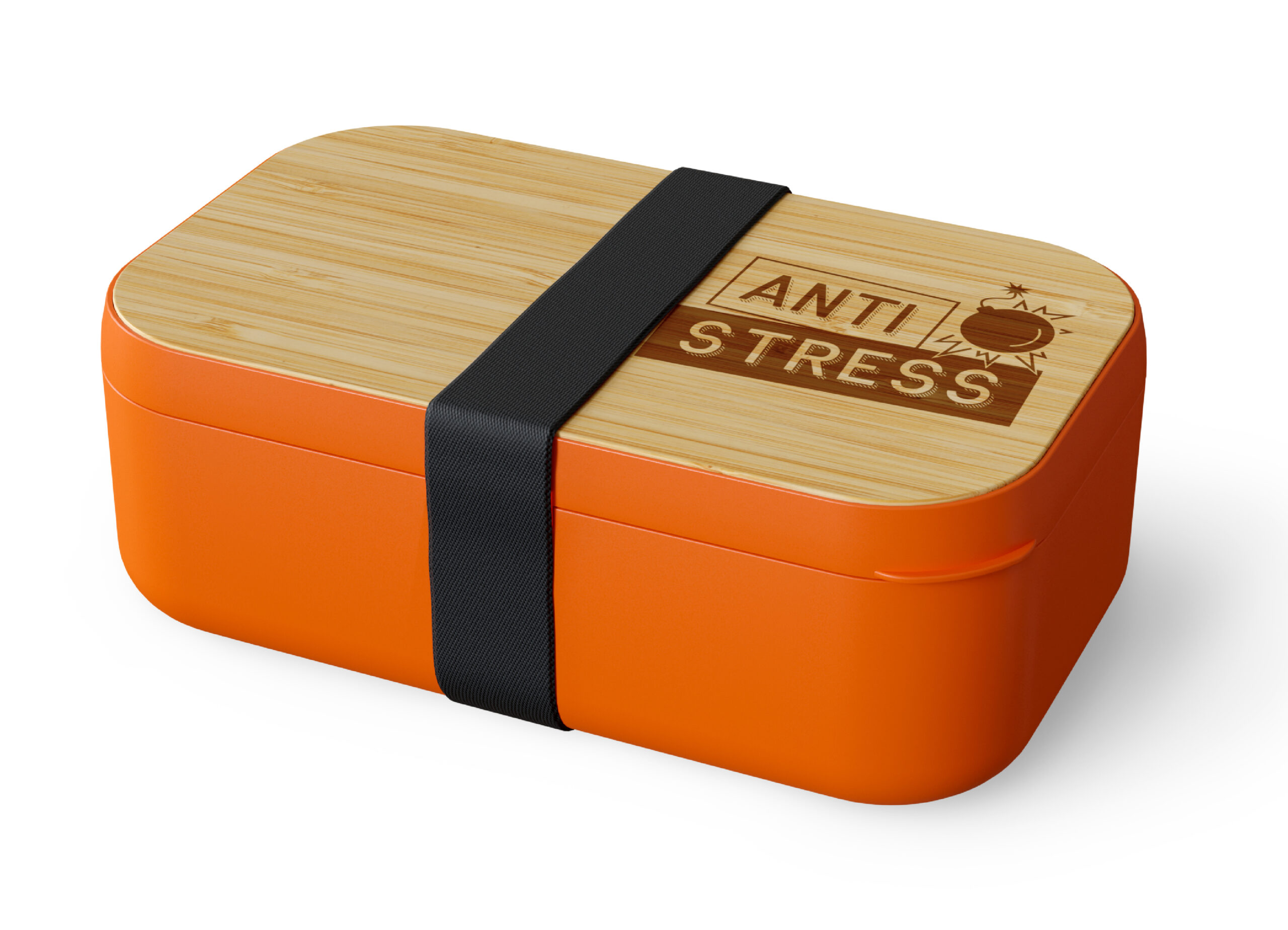 Die “Anti Stress” Brotdose ist auch mit einem Gummiband ausgestattet, das als Transportschutz fungiert und ungewolltes Öffnen verhindert. So kannst du sicher sein, dass deine Mahlzeiten sicher verstaut sind, egal wohin dich dein Tag führt.