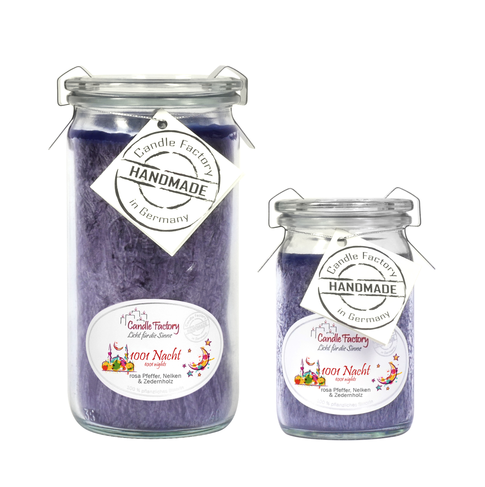 Tauche ein in die geheimnisvollen Düfte aus 1001 Nacht mit der exquisiten Candle Factory Duftkerze. In ihrem originalen Weck-Glas präsentiert sich diese Duftkerze in den Versionen Mini-Jumbo und Baby-Jumbo und verspricht ein Erlebnis, das deine Sinne verzaubern wird.