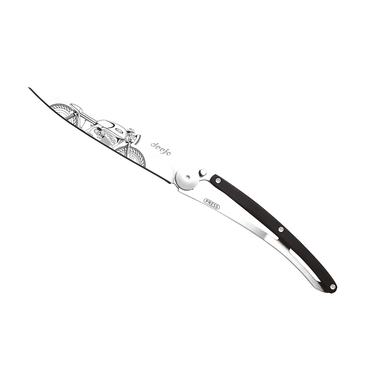 Deejo 37G Taschenmesser “Café Racer” mit Ebenholzgriff und grauem Titan-Finish