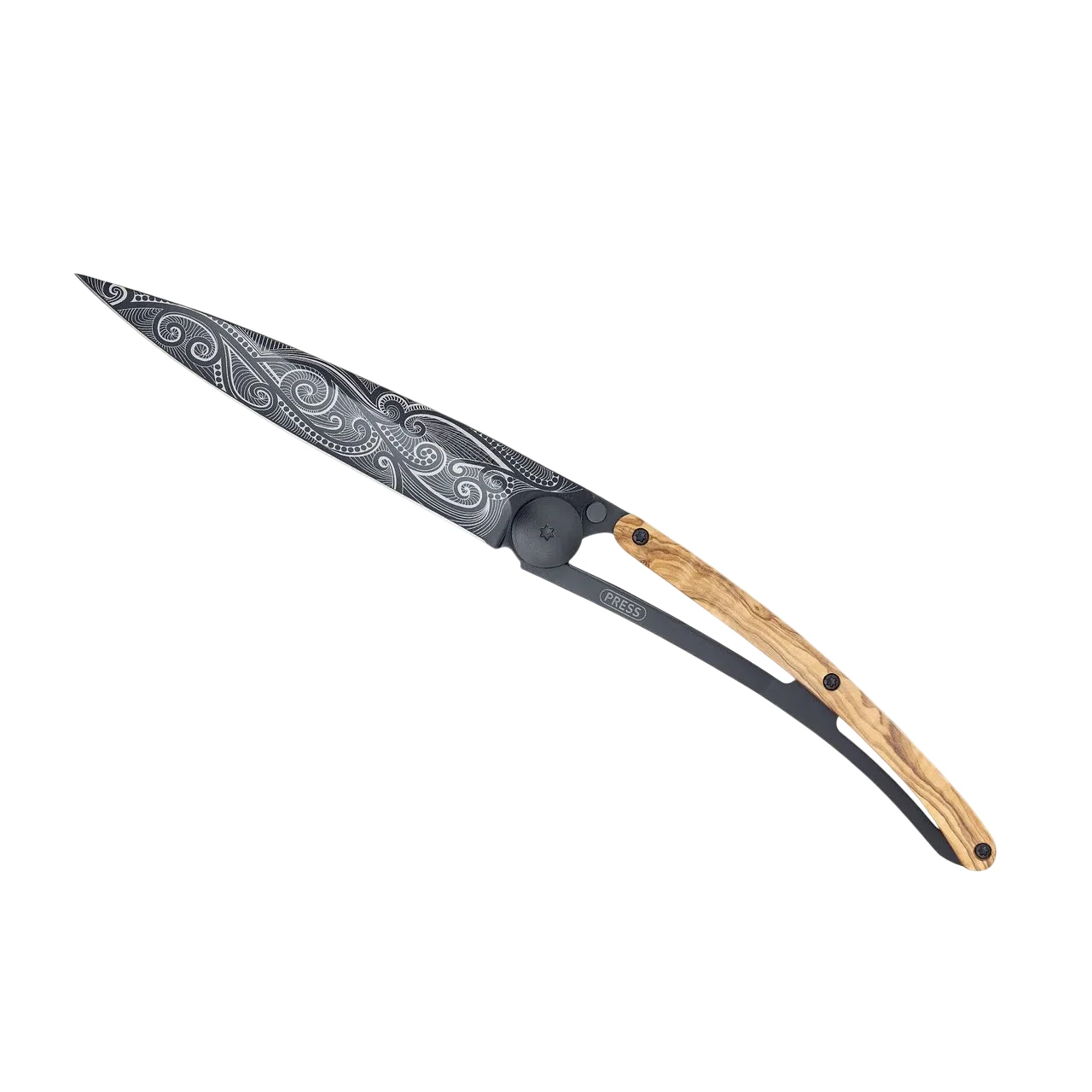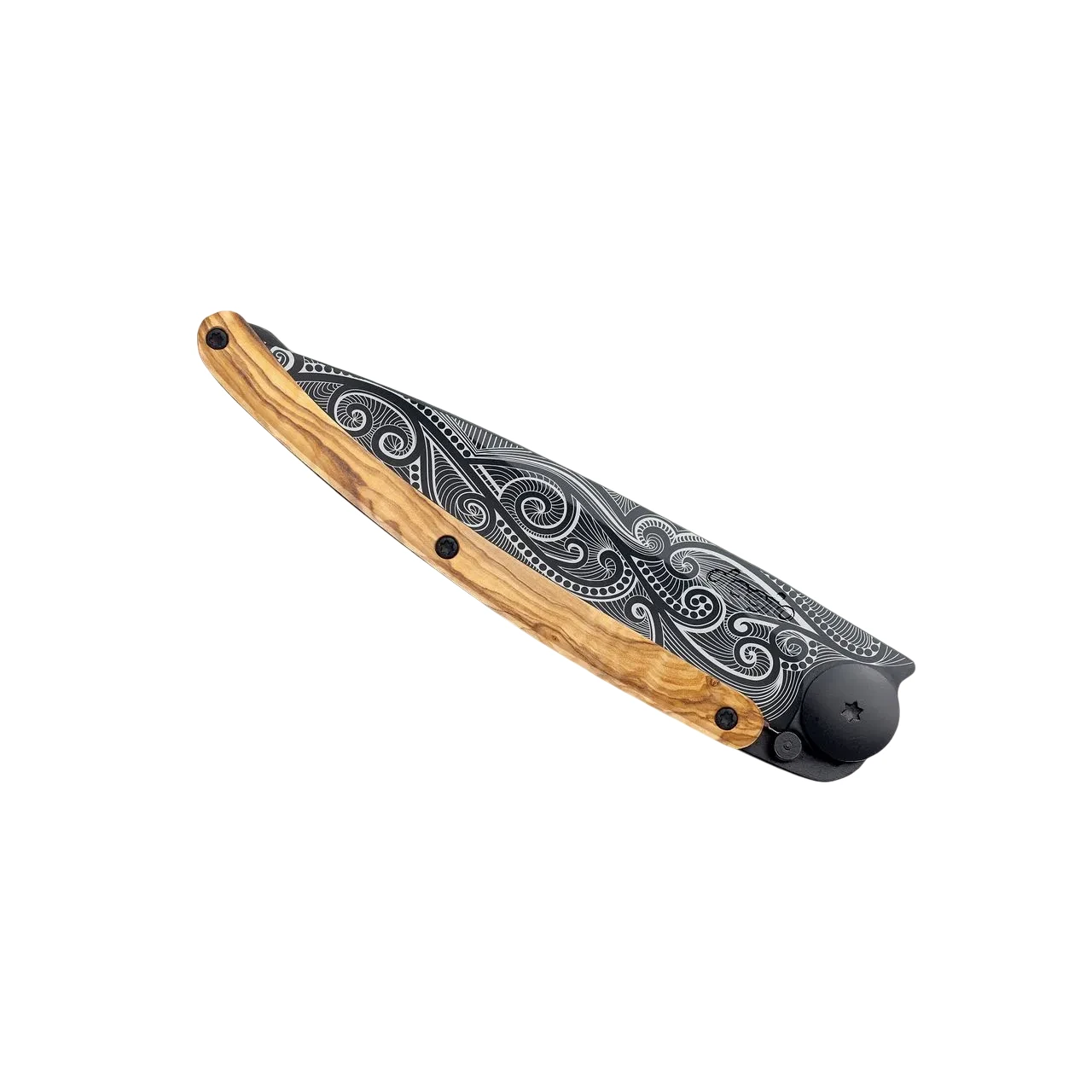 Deejo 37G Taschenmesser “Pazifik” mit Olivenholzgriff und schwarzen Titan-Finish