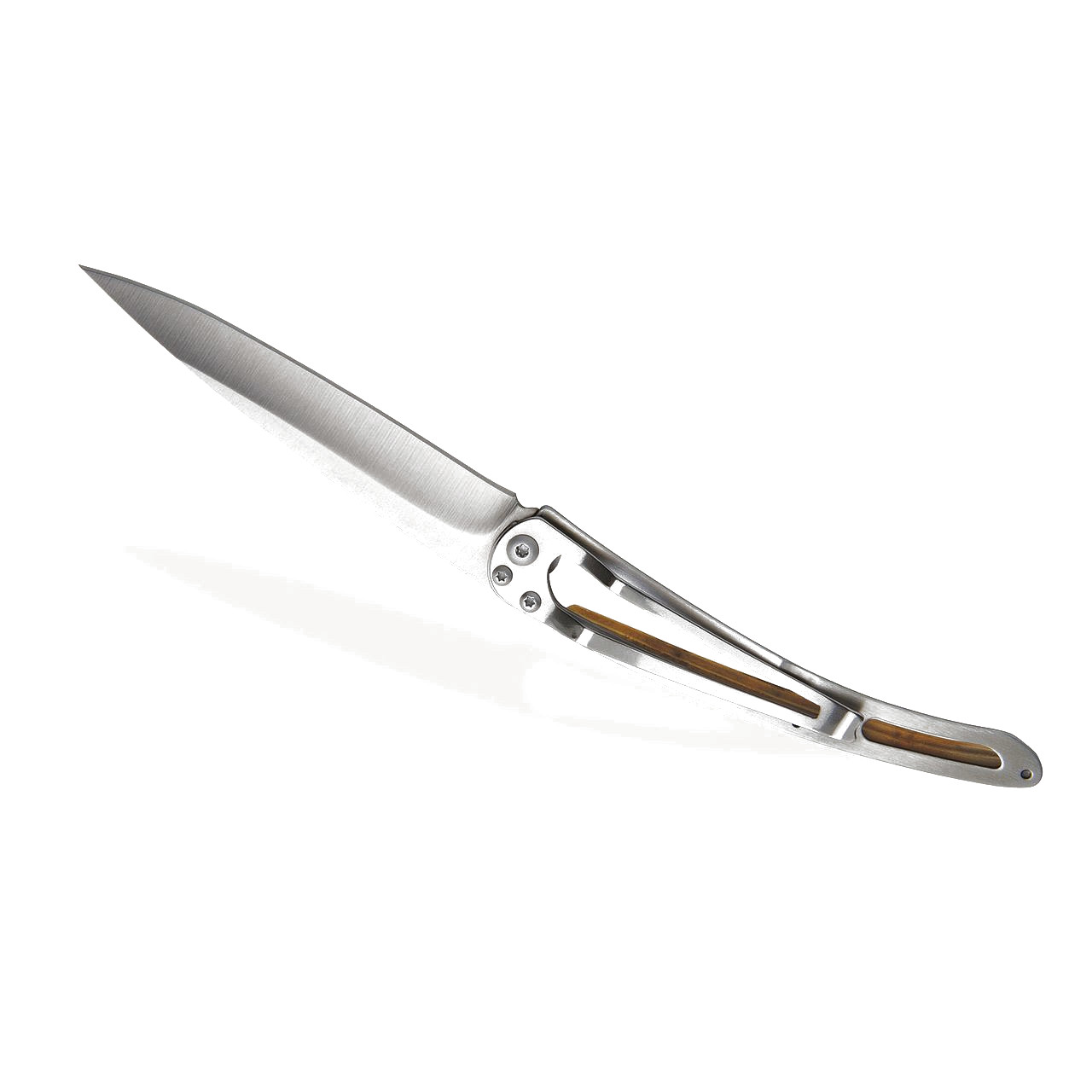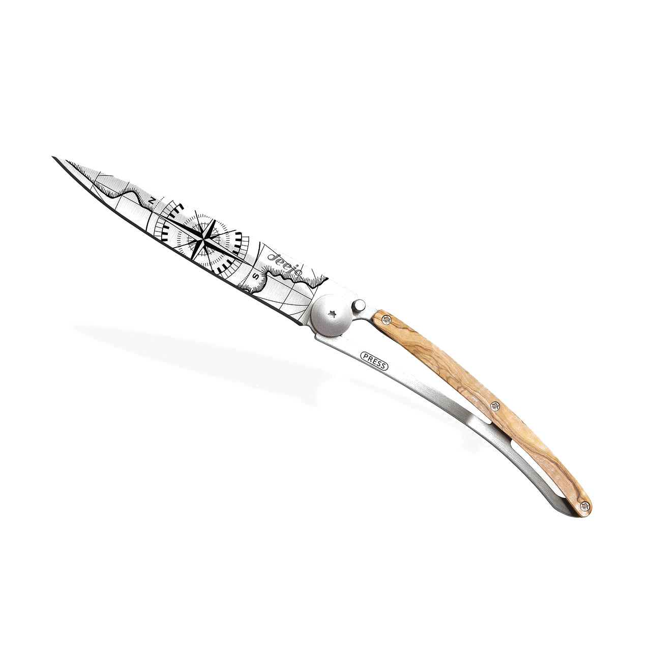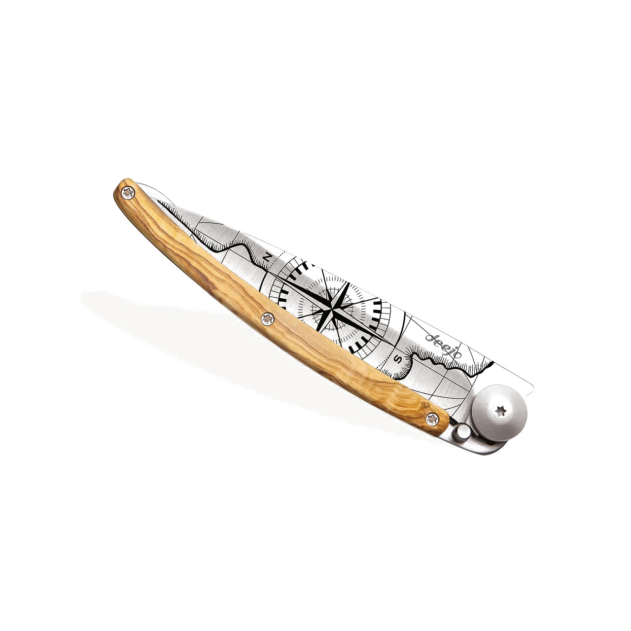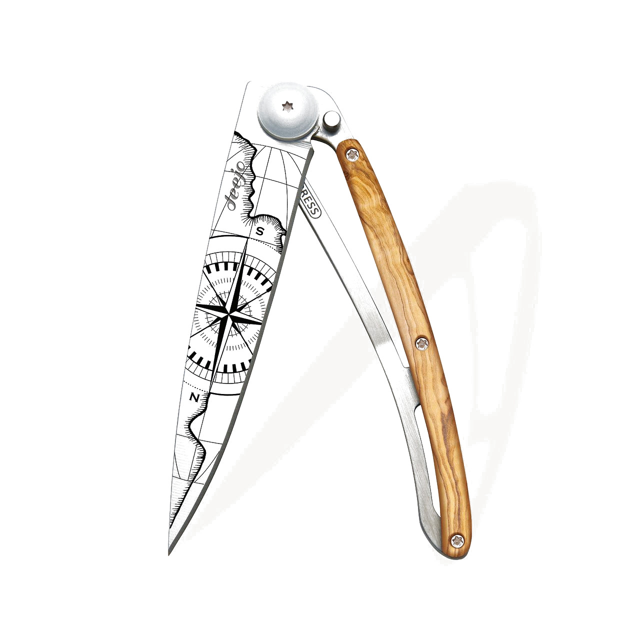 Deejo 37G Taschenmesser “Terra Incognita” mit Olivenholzgriff und grauem Titan-Finish