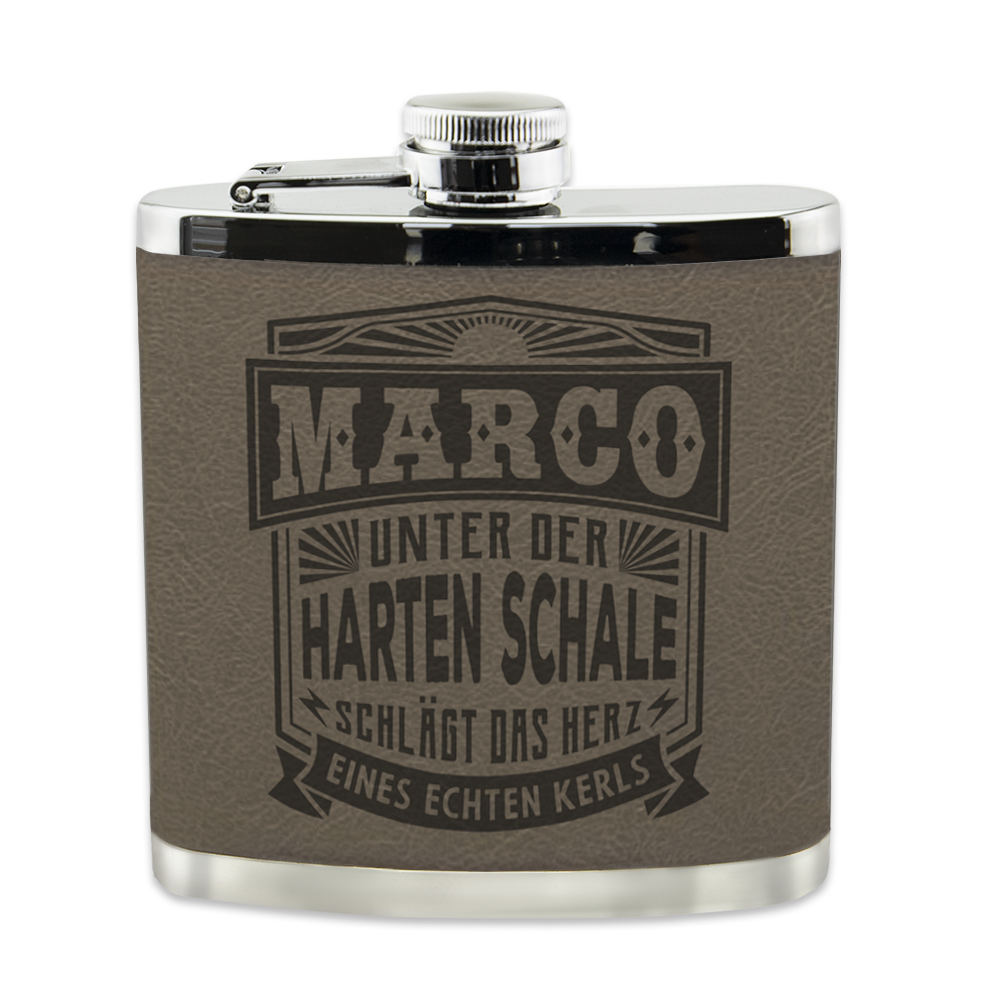 Der personalisierte Flachmann passt dank seiner maskulinen Aufmachung perfekt in die Taschen eines jeden Mannes. Ganz gleich ob Ehemann, Freund, Vater, Bruder, Kollege oder Cousin – diese praktischen Flachmänner sind eine originelle Geschenkidee, die dem Beschenkten nicht nur Freude macht, sondern auch einen funktionalen Mehrwert bietet.
