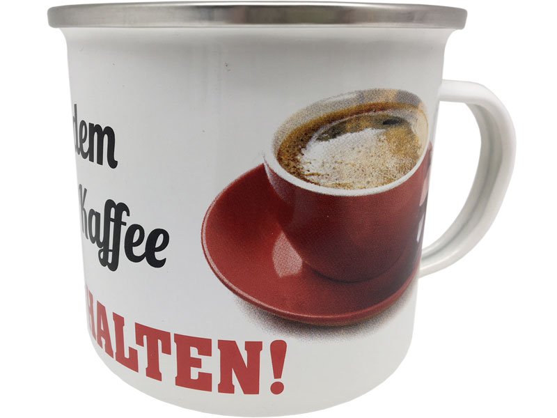 Dieser hochwertige Emaille-Becher hat einen schön gestalteten Rundum-Druck. Ein besonderes Geschenk für Freunde, Kollegen und Bekannte. Zu den verschiedensten Anlässen perfekt. Mit diesem Spruch perfekt für alle Kaffeetrinker: