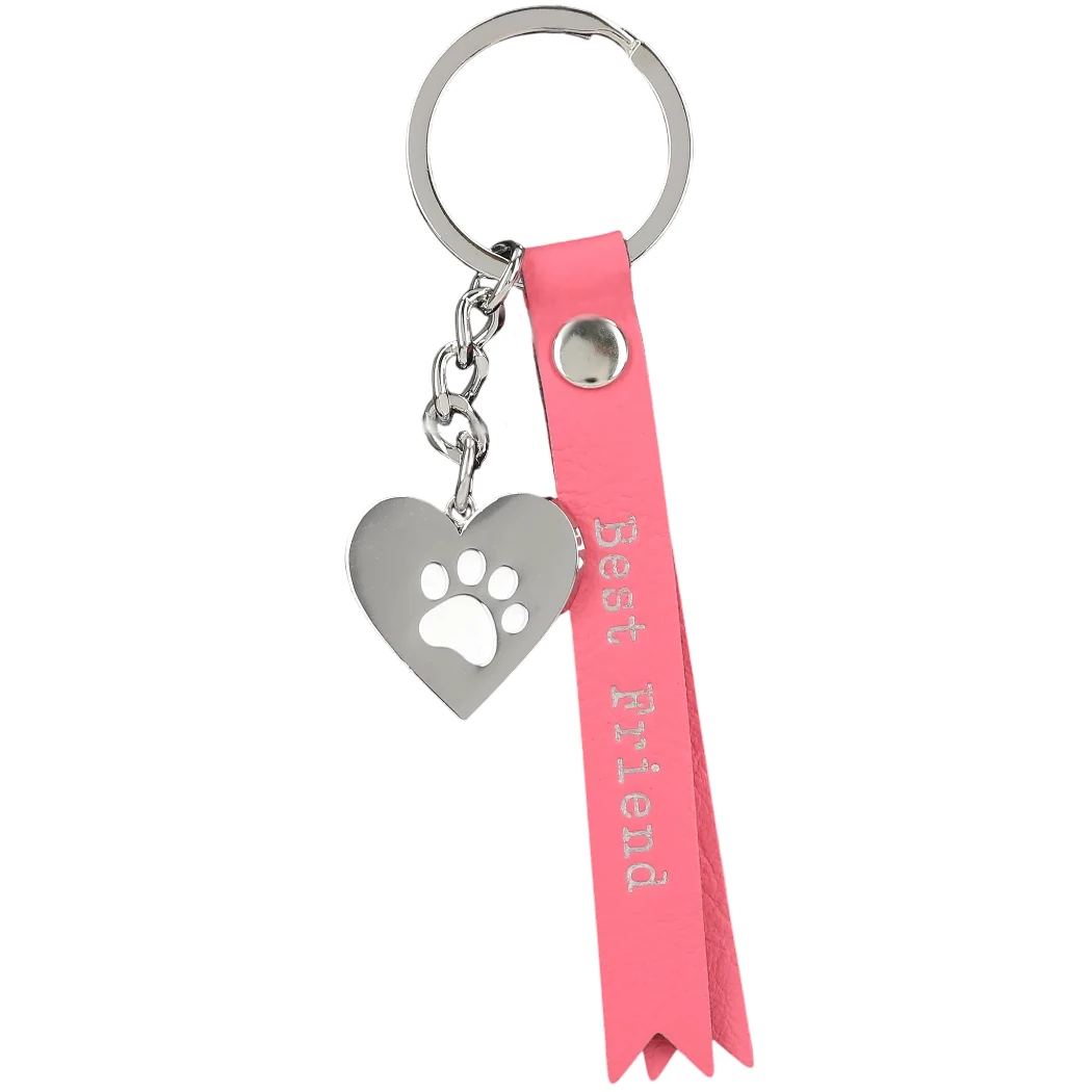 Ergänzt wird das Herz durch ein kräftig rosafarbenes Fähnchen aus hochwertigem Kunstleder. Auf diesem leuchtet in silberner Schrift die Botschaft „Best friend“ – schlicht, ehrlich und voller Gefühl. Eine silberne Niete sorgt für festen Halt und verleiht dem Gesamtbild eine moderne, stilvolle Note.