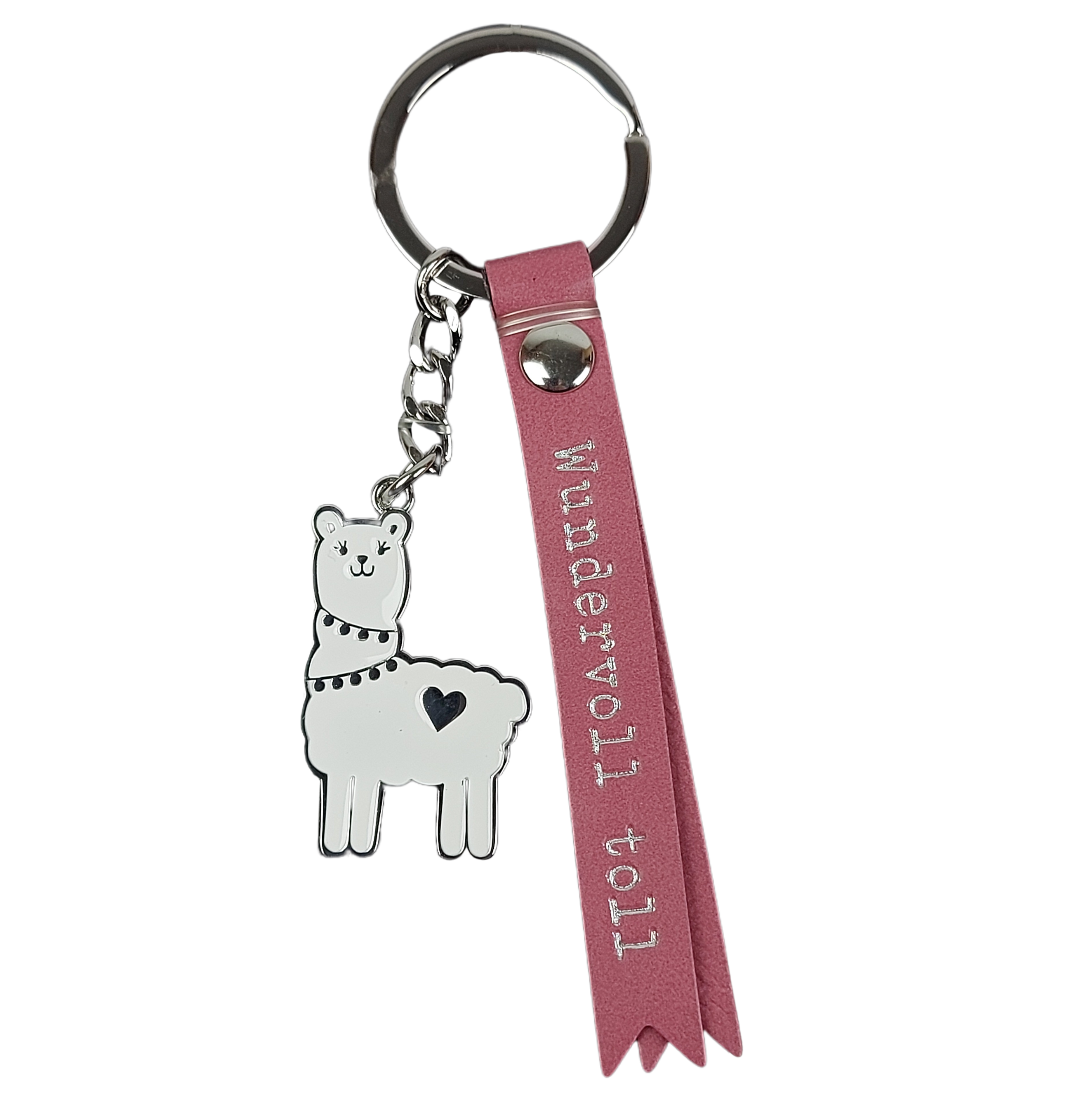 Er besteht aus zwei zauberhaften Elementen, die perfekt miteinander harmonieren. Zum einen das niedliche Lama aus silberfarbenem Metall mit weißer Emaille. Es trägt ein kleines silbernes Herz – ein süßes Detail, das sofort das Herz berührt. Zum anderen das pinkfarbene Fähnchen aus hochwertigem Kunstleder. Darauf funkelt in silberner Schrift die Botschaft „Wundervoll toll“. Eine klare, fröhliche Botschaft, die man sich selbst oder anderen gern mit auf den Weg gibt.