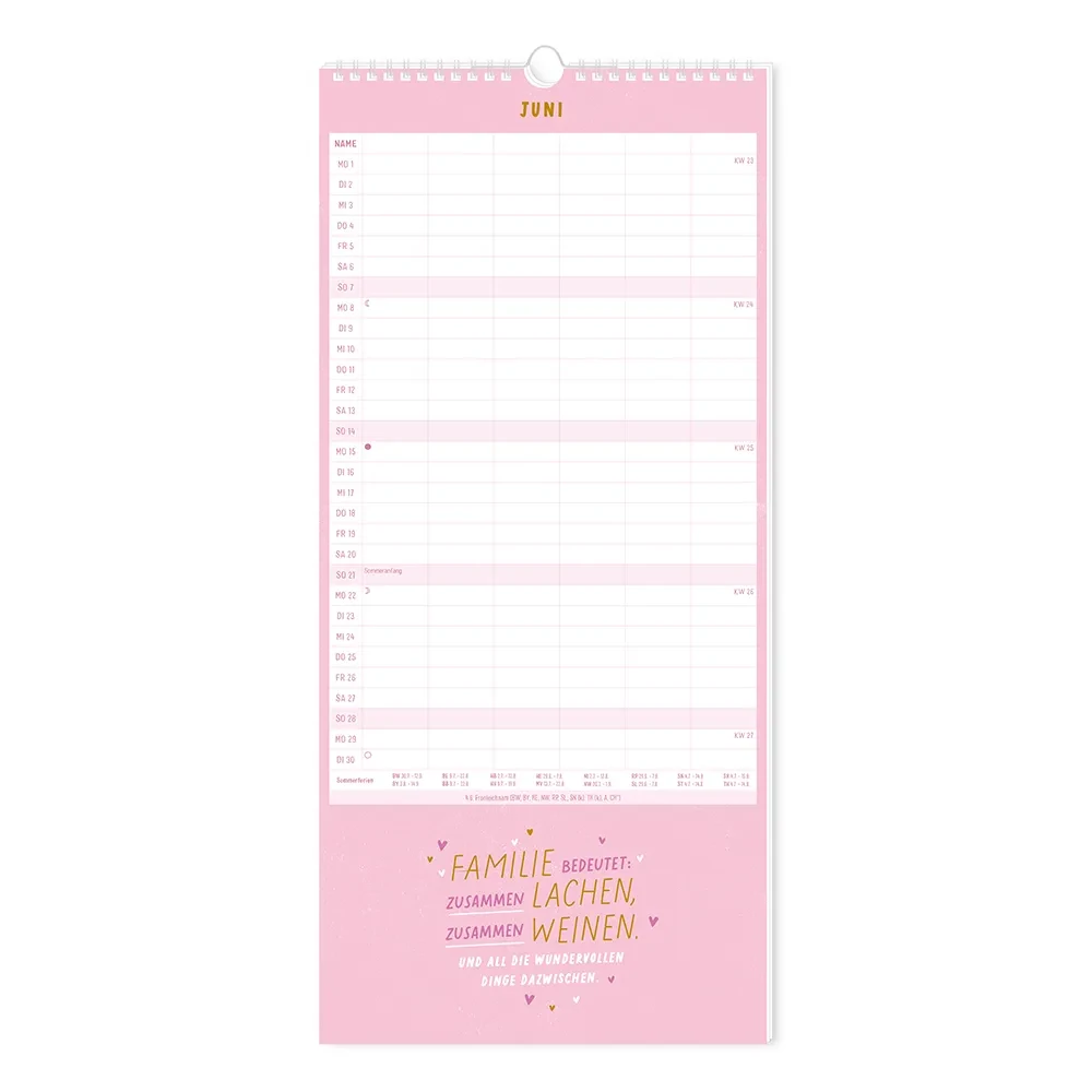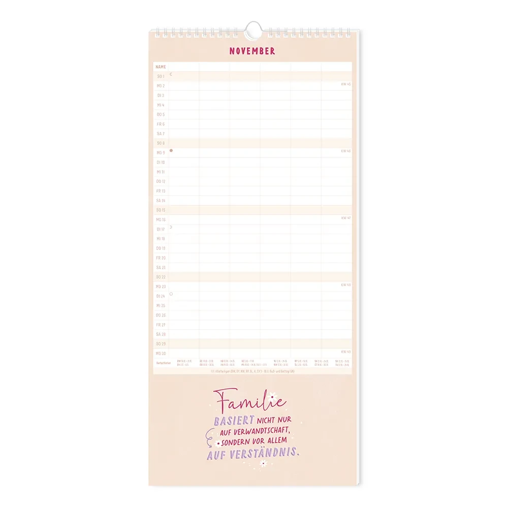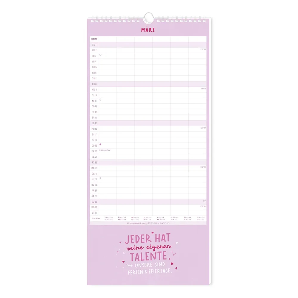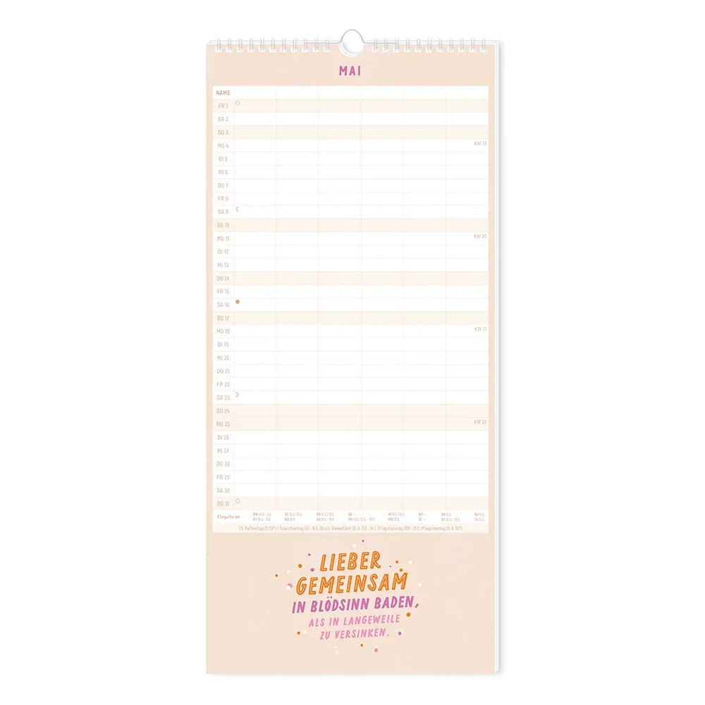 Der Familienplaner “Einer für alle” 2026 ist weit mehr als nur ein Kalender. Er ist ein liebevoll gestalteter Alltagsbegleiter, der Ihre Familie das ganze Jahr über verbindet. Ob wichtige Termine, Geburtstage, Urlaubspläne oder kleine Alltagsnotizen: Hier findet alles seinen Platz – und zwar für bis zu fünf Familienmitglieder gleichzeitig. So bleibt nichts vergessen, und alle behalten den Überblick.