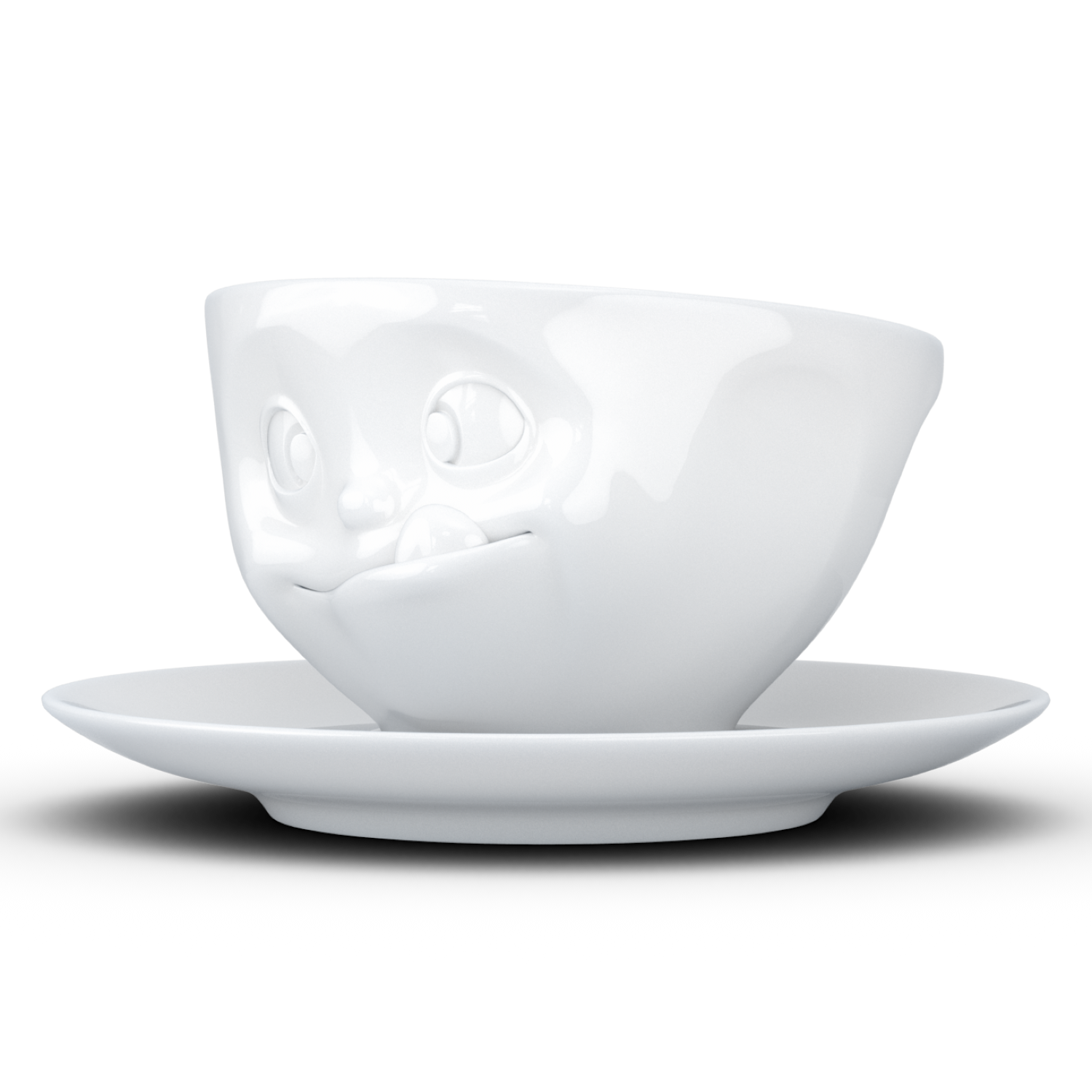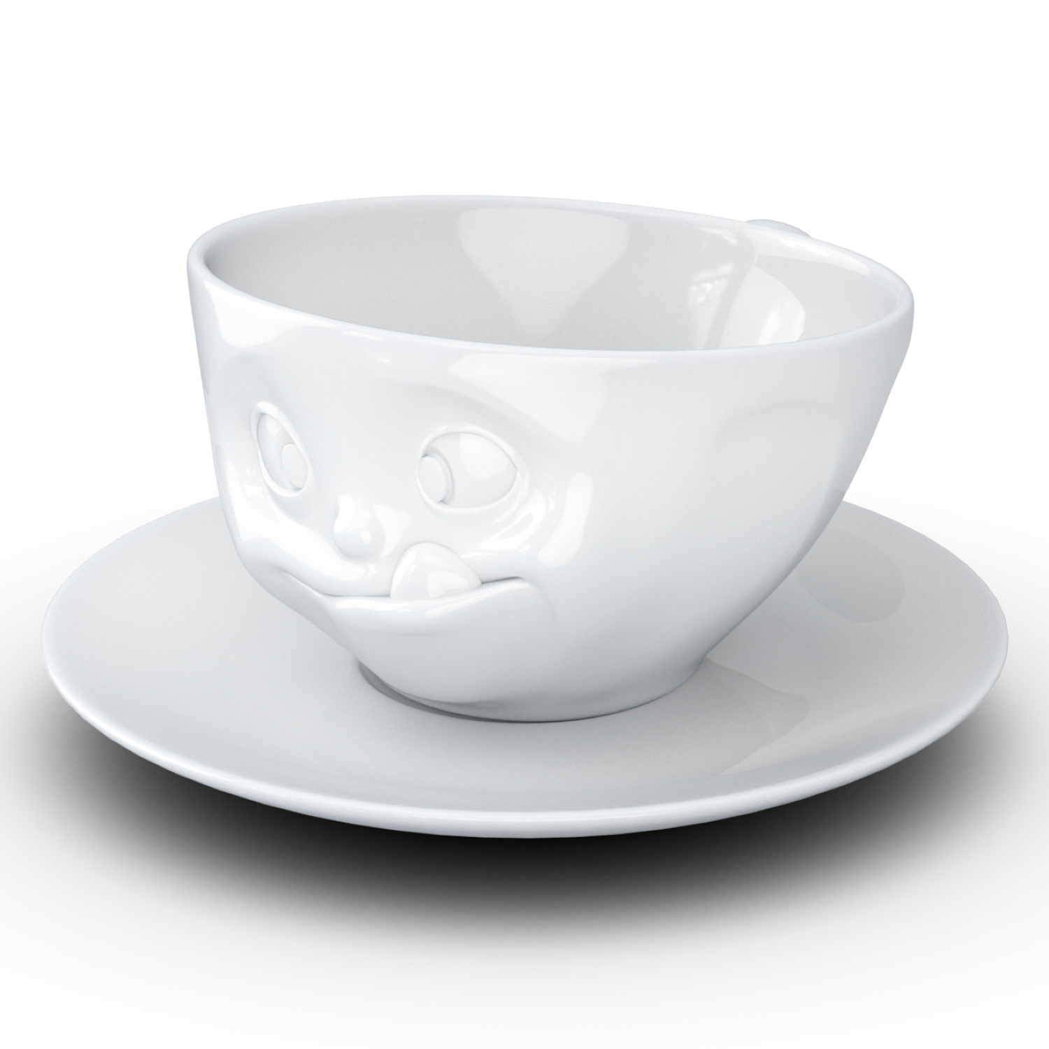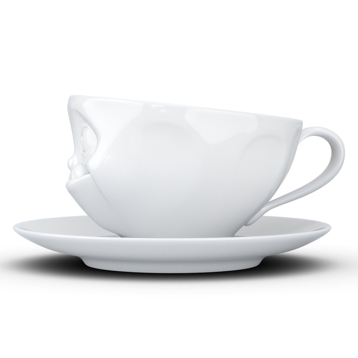 Durch ihre schlichte, weiße Farbe passt die Tasse samt passendem Unterteller zu nahezu jedem Kaffeeservice und fügt sich harmonisch in jede Tischdekoration ein. Das hochwertige Design überzeugt durch zeitlose Eleganz und fügt Ihrer Kaffeerunde eine Prise Humor hinzu.