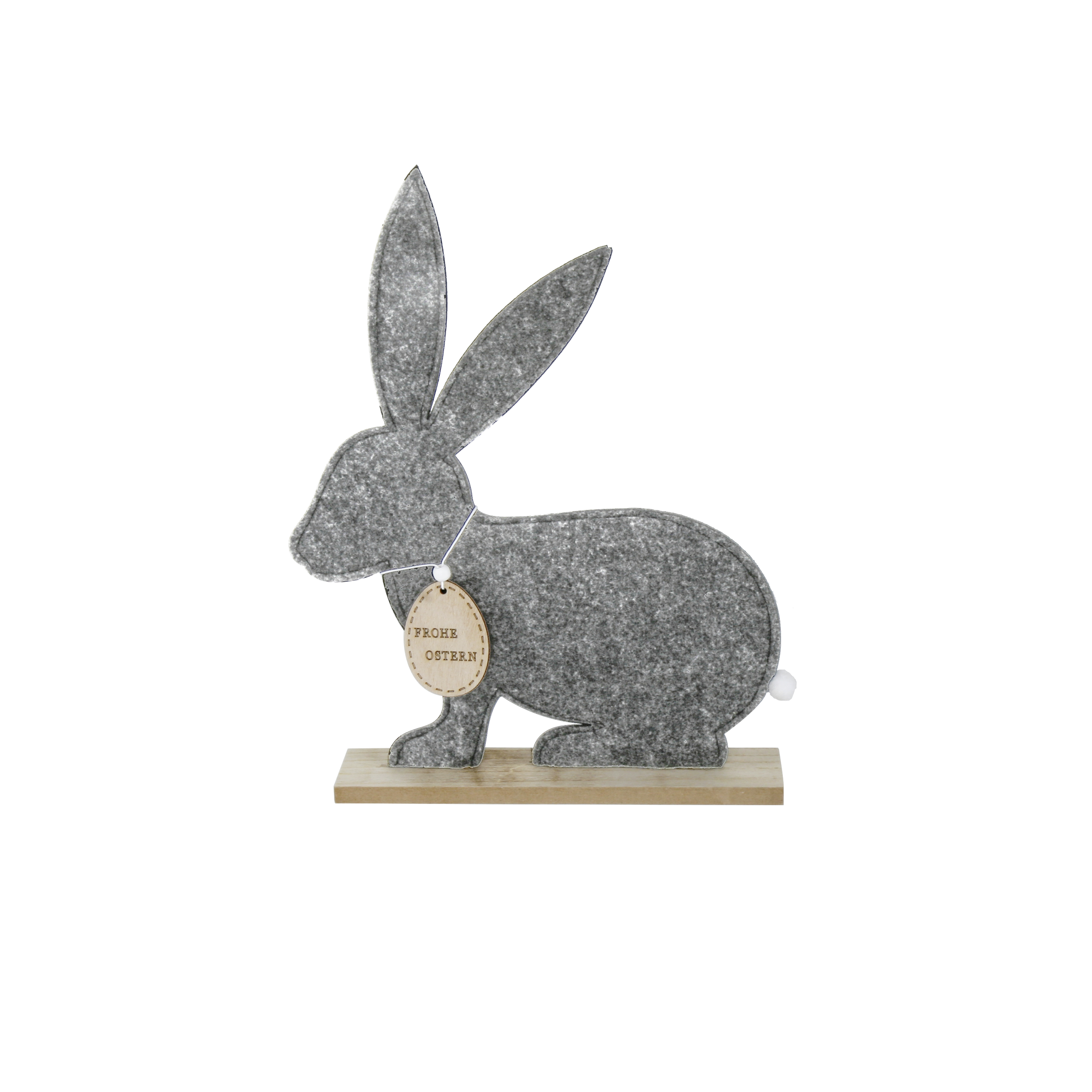 Dieser hoppelnde Hase, aus weichem Filz, ist eine schöne Dekoration. Auf einem Holzsockel sitzend ist er nicht nur für die Oster-Dekoration ideal. Durch sein zeitloses Design, in der neutralen Farbe Grau, passt er in jedes Ambiente und wird ein toller Hingucker in jedem Wohnraum.