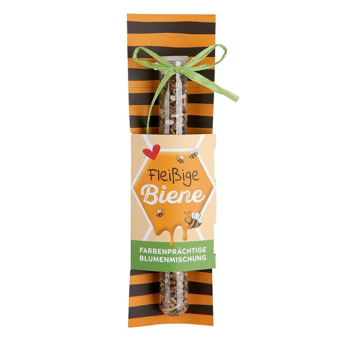 Verpackt ist das 20 g Saatgut in einem dekorativen Reagenzglas – ideal zum Verschenken. Die Menge reicht für etwa 10 m² Blühfläche. Ein sinnvolles, nachhaltiges Geschenk für Naturfreunde, Hobbygärtnerinnen und alle, die ein Herz für Insekten haben. Besonders schön: Dieses Produkt wird unter fairen Bedingungen in regionalen Werkstätten von Menschen mit Behinderung liebevoll abgefüllt. So entsteht Freude auf allen Ebenen.