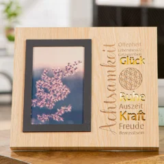Ein besonderes Geschenk für Ihre Liebsten – oder für sich selbst. Ob zu Geburtstagen, als Zeichen der Dankbarkeit oder einfach als Erinnerung daran, was wirklich zählt: Mit dem Fotorahmen “Achtsamkeit” schenken Sie nicht nur ein Bild, sondern ein Gefühl.