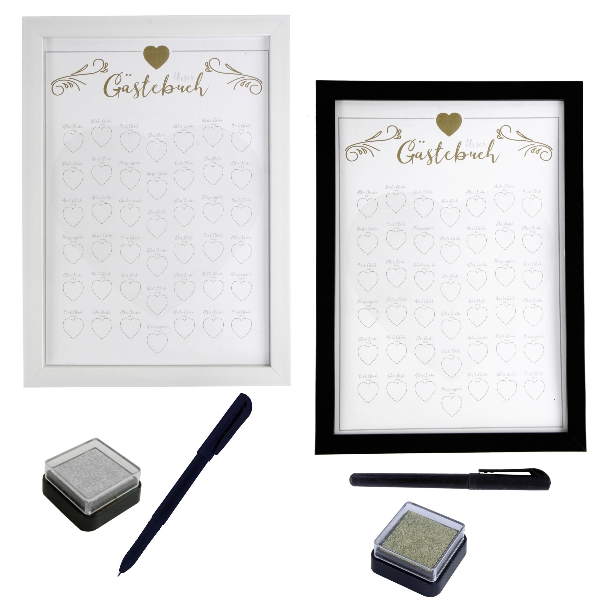 Durch Fingerabdrücke Ihrer Liebsten wird es zu einem individuellen Kunstwerk, jeder Gast sucht sich ein passendes Spruchherz raus und drückt seinen goldenen Fingerabdruck dort hinein.