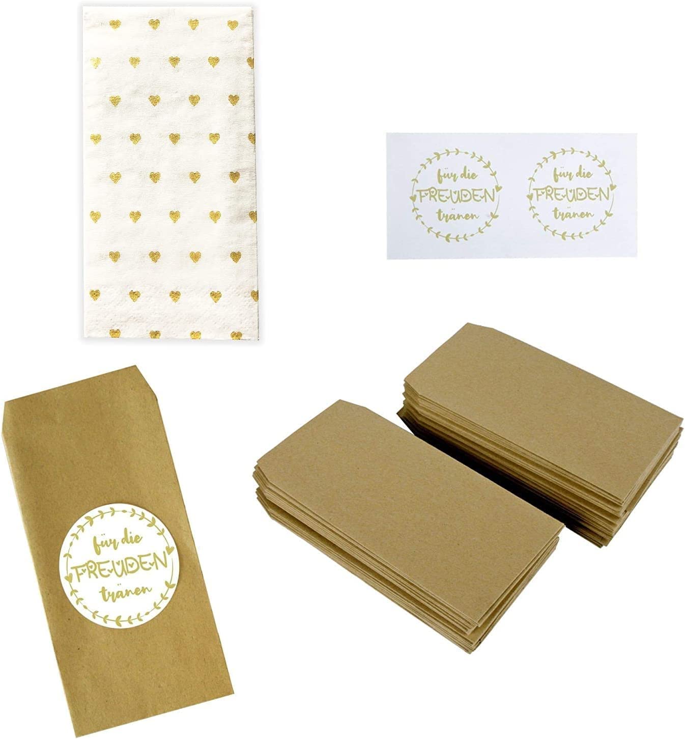 Natürlich sollen sich diese nicht auf der guten Festtagskleidung verewigen. Daher bieten sich diese zu jedem Anlass passenden Taschentücher bestens hierfür an. Um diese aber stilvoll und vor allem hygienisch unter die Gäste zu bringen, lassen sich diese in passenden Schutztüten verpacken.
