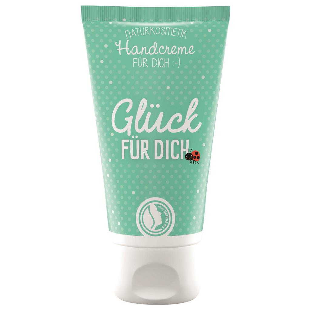 In der schönen Tube mit dem Schriftzug “Glück für Dich”, befindet sich eine pflegende Naturkosmetik-Handcreme mit Bio-Sheabutter für ein besonderes Hautgefühl. Sie zieht schnell ein und versorgt deine Haut mit Feuchtigkeit. Die handlichen Tuben sind ein Hingucker und passen in jede noch so kleine Handtasche. So hast Du auch unterwegs immer streichelweiche Hände.