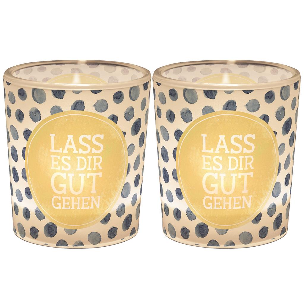 Das Windlicht “Lass es Dir gut gehen” – Da geht ein Licht auf! Es gibt wohl nur wenige Dinge, die uns mehr faszinieren als offenes Feuer. Instinktiv fühlen wir uns zugleich von ihm angezogen und abgeschreckt. In seiner gezähmtesten Form, als Flamme die um den Docht einer Kerze wabert, verbinden wir es mit heimeliger Romantik. Das flackernde, warme Licht steht für Gemütlichkeit. Für Momente, die die Seele streicheln. Ob beim Candlelight-Dinner mit dem Partner, beim Entspannungs-Schaumbad mit einem leckeren Glas Wein oder Abends auf der Terrasse mit einem guten Buch – Kerzenlicht sorgt für die richtige Stimmung. Die Windlichter aus der “Geschenk für Dich“-Familie sind genau das Richtige für all diese und noch viele andere Gelegenheiten. Mit stilvollen und kultigen Motiven aus der “LiebeGrüße“-Kollektion, sorgen sie auch für gute Stimmung, wenn der Docht kalt bleibt.