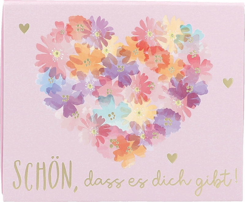 Die Geschenkbox mit Musik “Schön, dass es dich gibt” ist mehr als nur eine Verpackung – sie ist ein kleines Kunstwerk, das Freude und Wärme verbreitet. Sie bringt Menschen zum Lächeln, berührt das Herz und sagt auf wunderbare Weise: Du bist etwas ganz Besonderes!