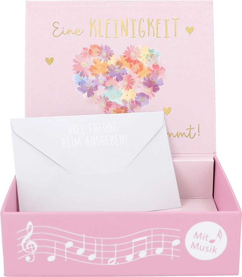 Im Inneren der Box verbirgt sich ein kleiner Umschlag – perfekt, um eine persönliche Nachricht, einen Gutschein oder etwas Kleingeld für den Beschenkten zu hinterlegen. Darüber hinaus bietet die Box genügend Platz für ein kleines Zusatzgeschenk, das die Überraschung perfekt macht. So wird dieses Präsent zu einer liebevollen Geste, die in Erinnerung bleibt.