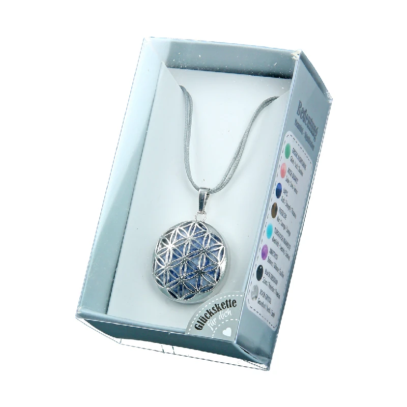 Diese Halskette mit Lapislazuli “Blume des Lebens” wird in einer stilvollen Geschenkbox geliefert. Auf der Verpackung finden Sie die Bedeutung des Steins und der Symbolik. So eignet sich die Kette wunderbar als Geschenk – für Herzensmenschen oder für Sie selbst.