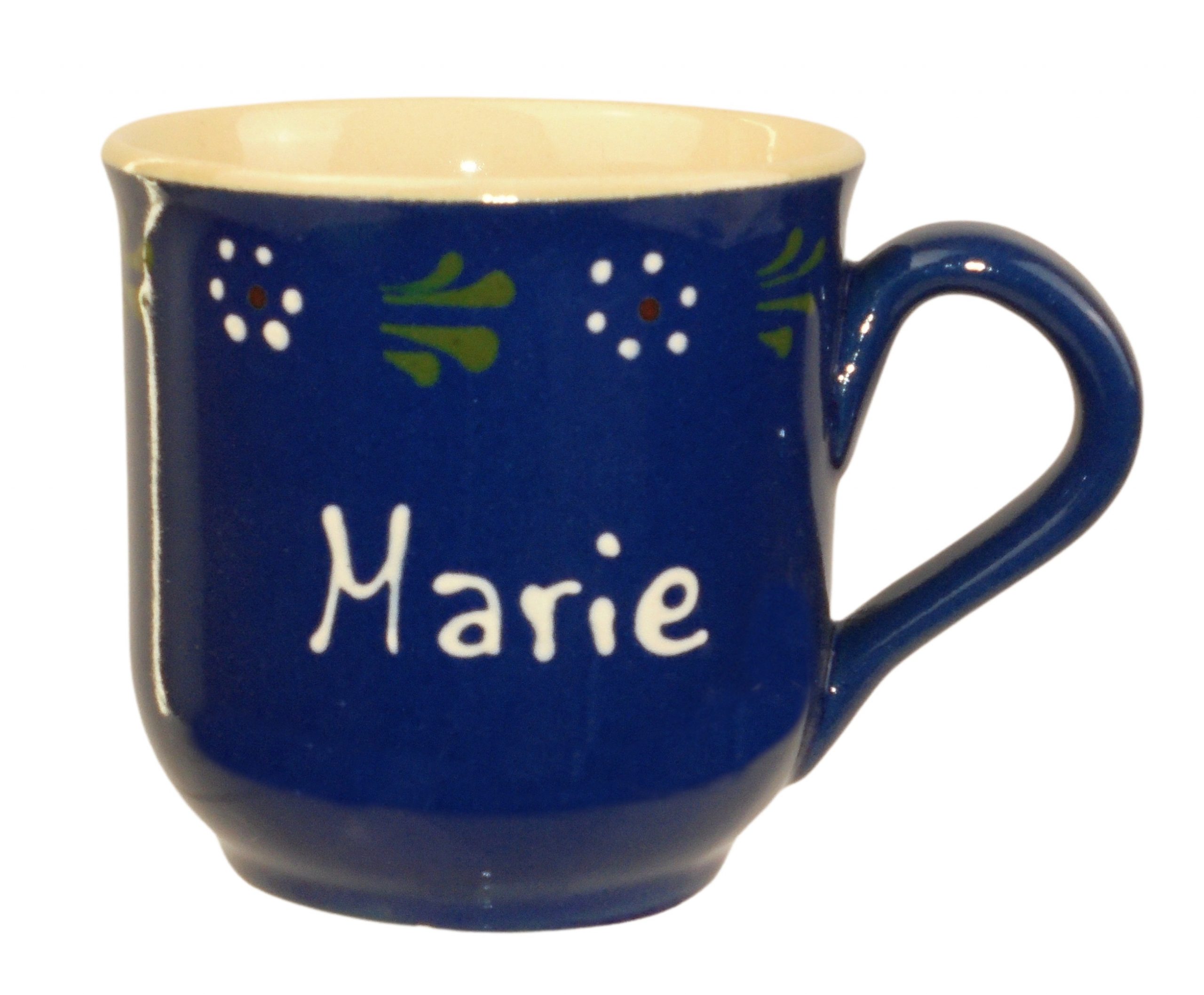 Handgemachte Tasse Bunzlau mit Wunschnamen/Wunschtext in weißer Schrift