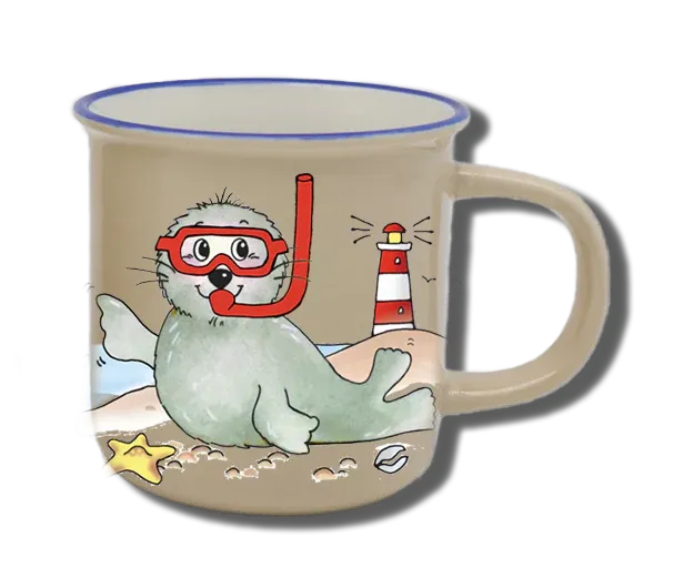 Handgemachte Tasse „Seehund Taucherbrille“ mit Wunschname