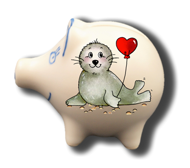 Handgemachtes Sparschwein Seehund “Herz” mit Wunschnamen/Wunschtext
