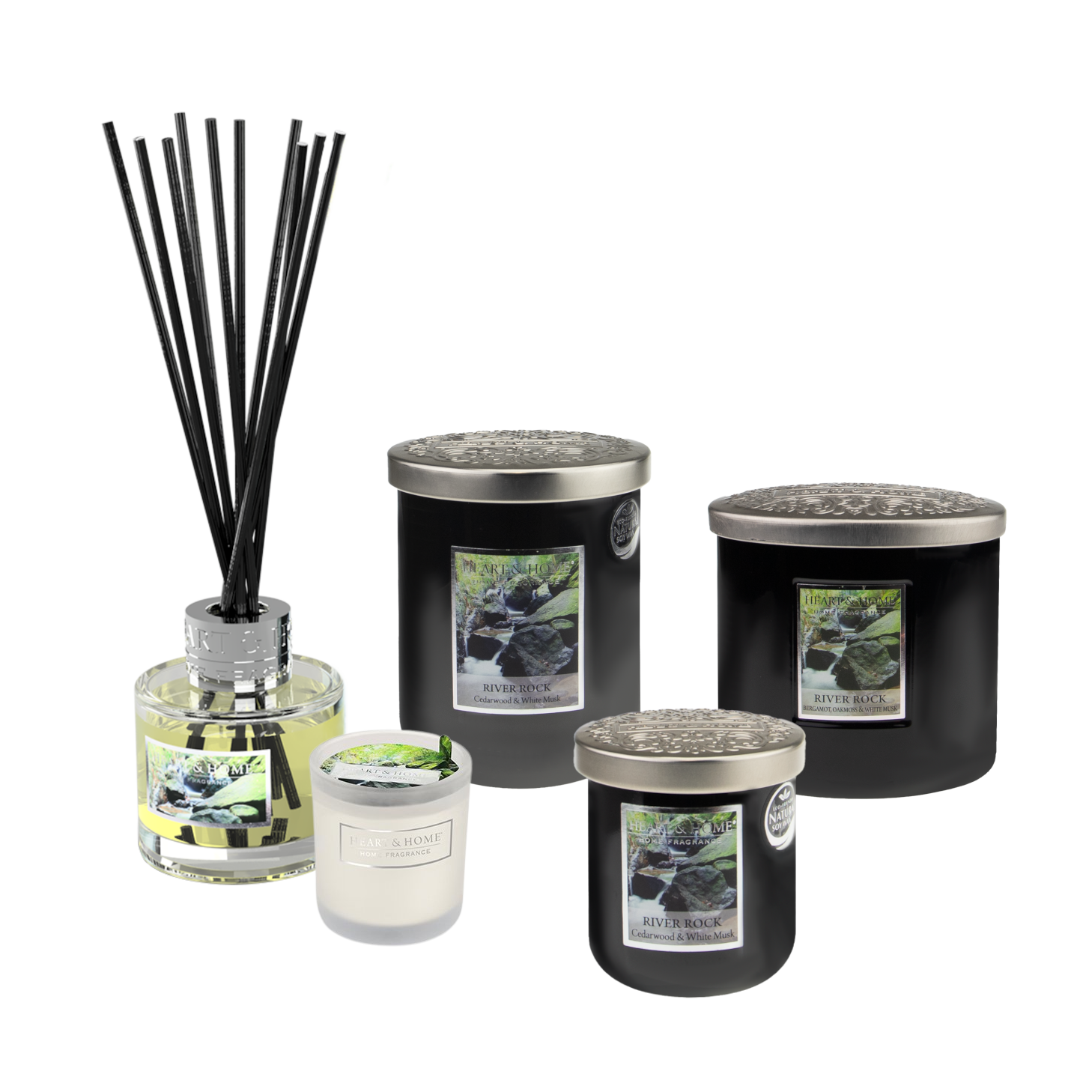 Die Heart & Home Duftkerzen und Raumdüfte sind so konzipiert, dass sie überall schön aussehen. Wie die Ellipse Twin Wick in einer modernen Ellipsenform aus mattiertem, weißem Glas. Aber natürlich sind die Kerzen wie gewohnt auch in den runden Gläsern zu haben. Etwas kleiner ist der “River Rock”-Duft auch als Votivkerze im Glas oder wenn es flammenlos sein soll auch als Duftdiffusor verfügbar.