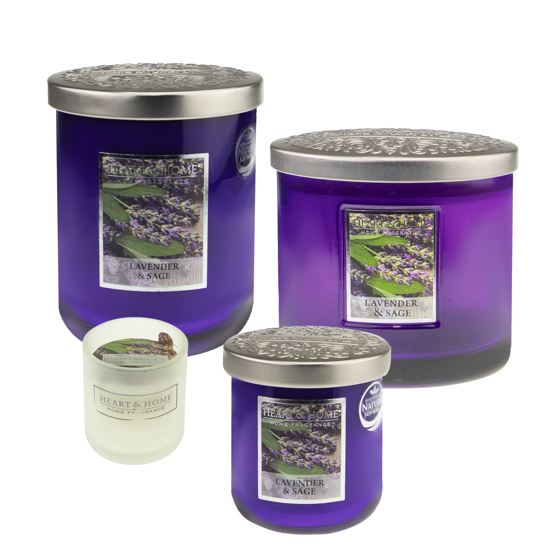 Die Heart & Home Duftkerzen und Raumdüfte sind so konzipiert, dass sie überall schön aussehen. Wie die Ellipse Twin Wick in einer modernen Ellipsenform aus farbigem Glas. Aber natürlich sind die Kerzen wie gewohnt auch in den runden Gläsern zu haben. Etwas kleiner ist der “Lavender & Sage”-Duft auch als Votivkerze im Glas verfügbar.