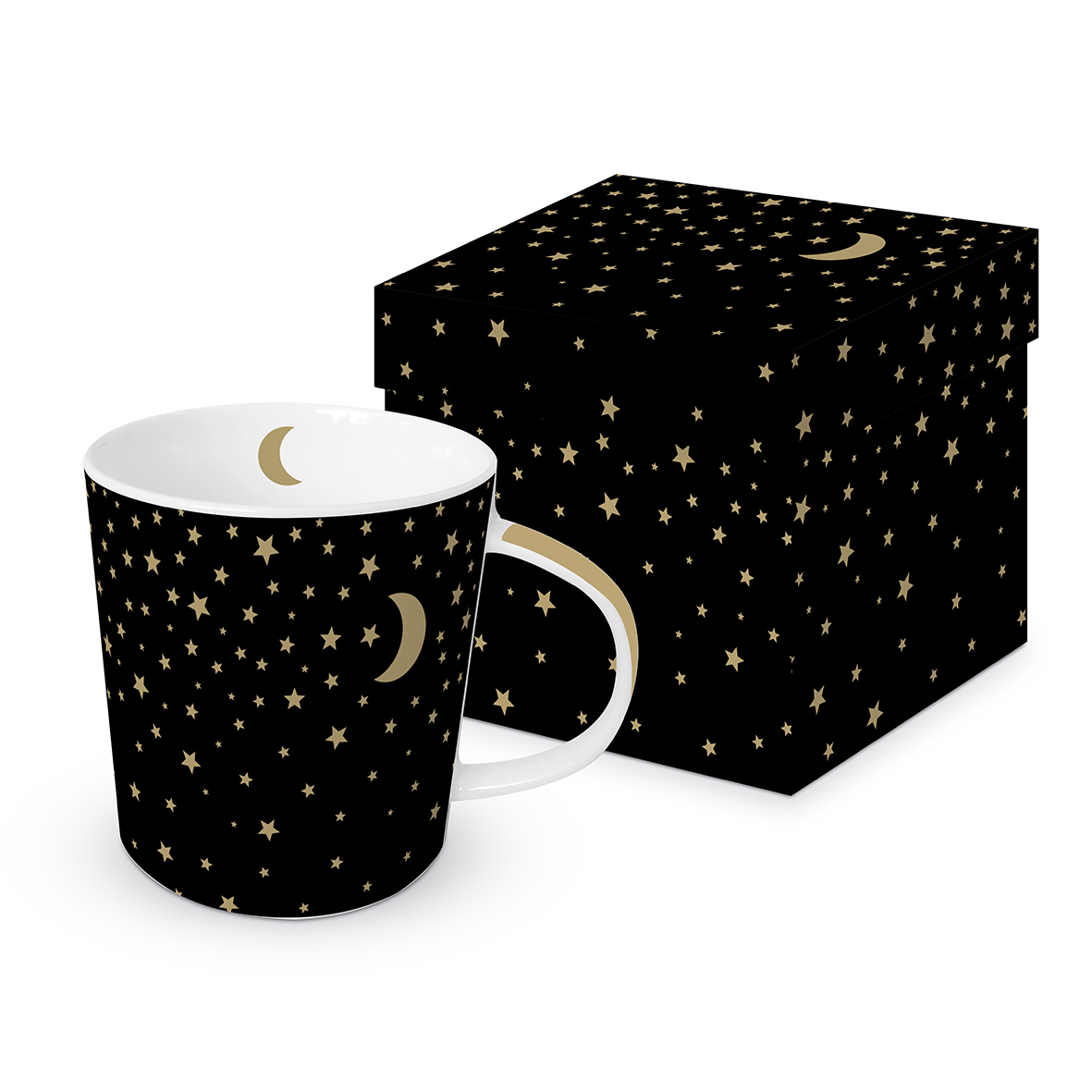 Schwarzer Henkelbecher mit Mond und Sternen – Eleganz für Ihre Kaffeepause