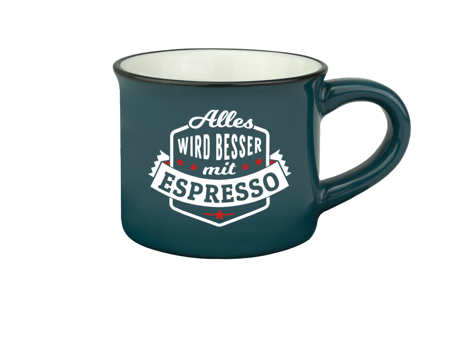 Farbig bedrucktes Espressotässchen mit Spruch