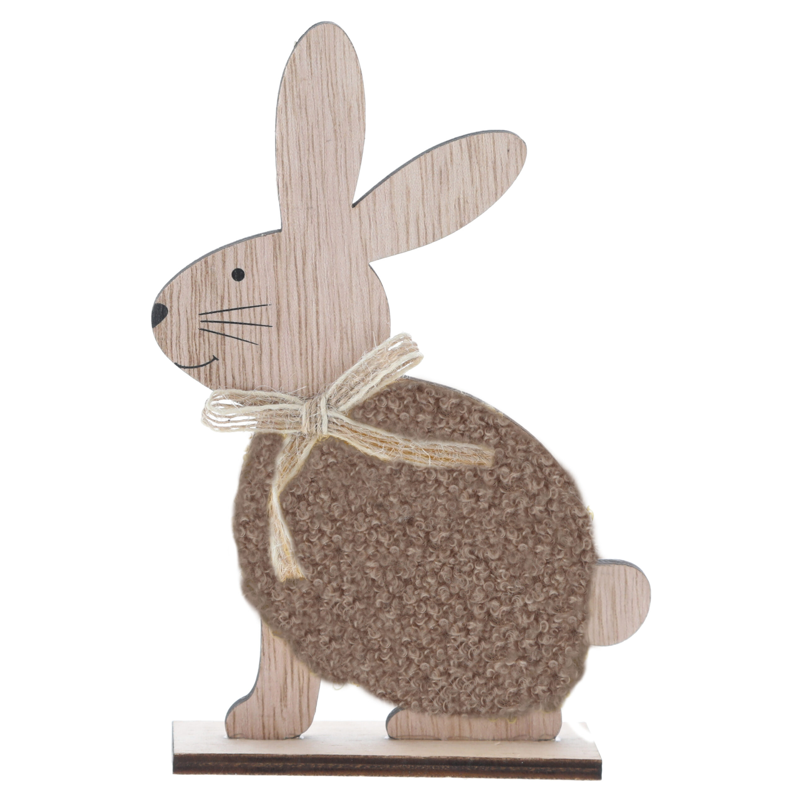 Dieser “Holz-Deko-Hase in Seitenansicht” bezaubert mit seinem niedlichen Gesicht, dem flauschigen Körper und einer liebevoll gebundenen Schleife. Er sitzt sicher auf einem stabilen Holzsockel und verbreitet mit seinem zeitlosen Design eine gemütliche Atmosphäre. Die sanften Naturtöne fügen sich harmonisch in jedes Wohnambiente ein und machen ihn zu einem wunderschönen Hingucker – nicht nur zu Ostern, sondern das ganze Jahr über.