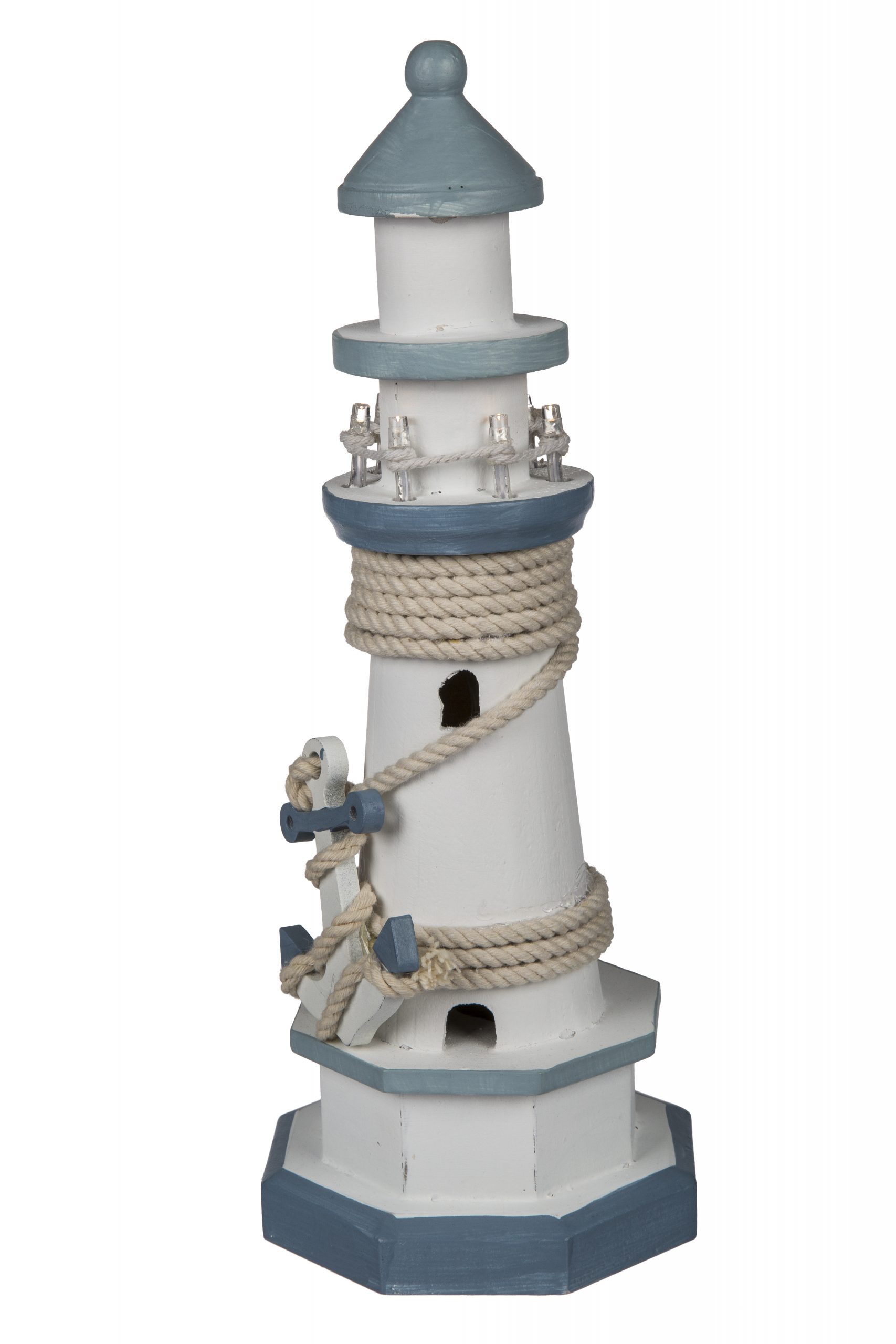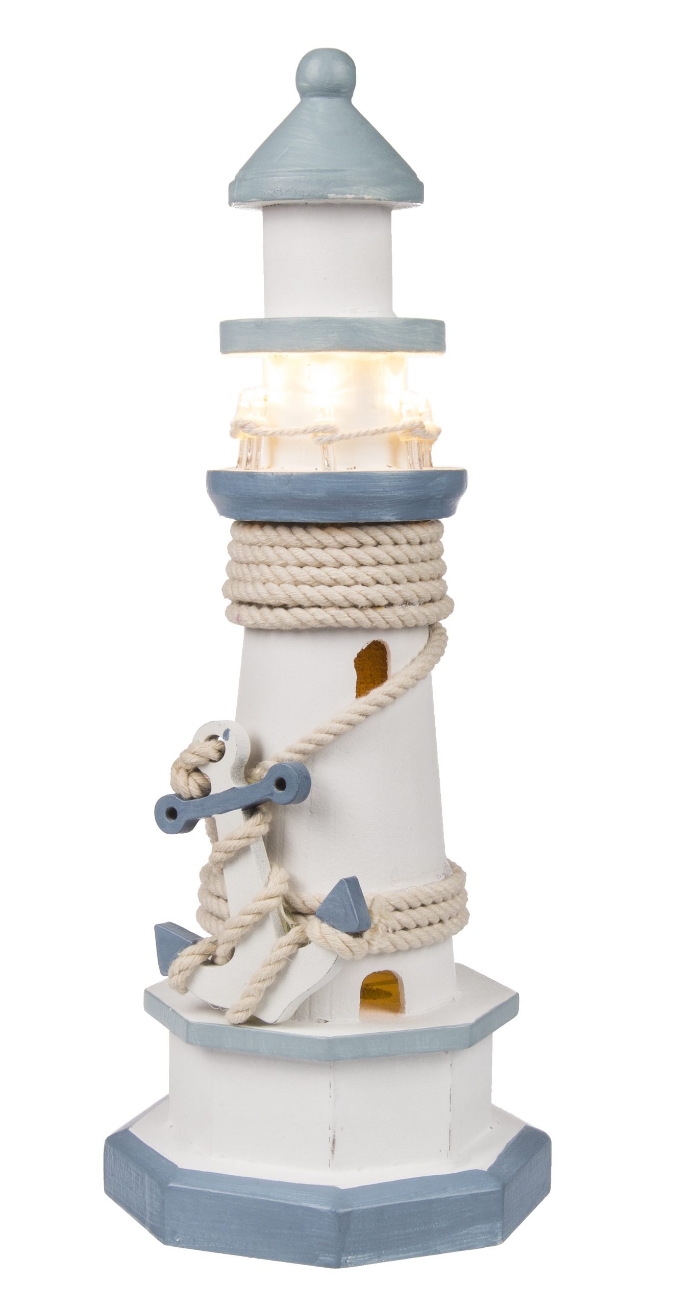 Der Leuchtturmeignet sich sehr schön für die maritime Dekoration und dank seiner 8 warmweißen LEDs auch als indirekte Beleuchtung auf Fensterbänken.