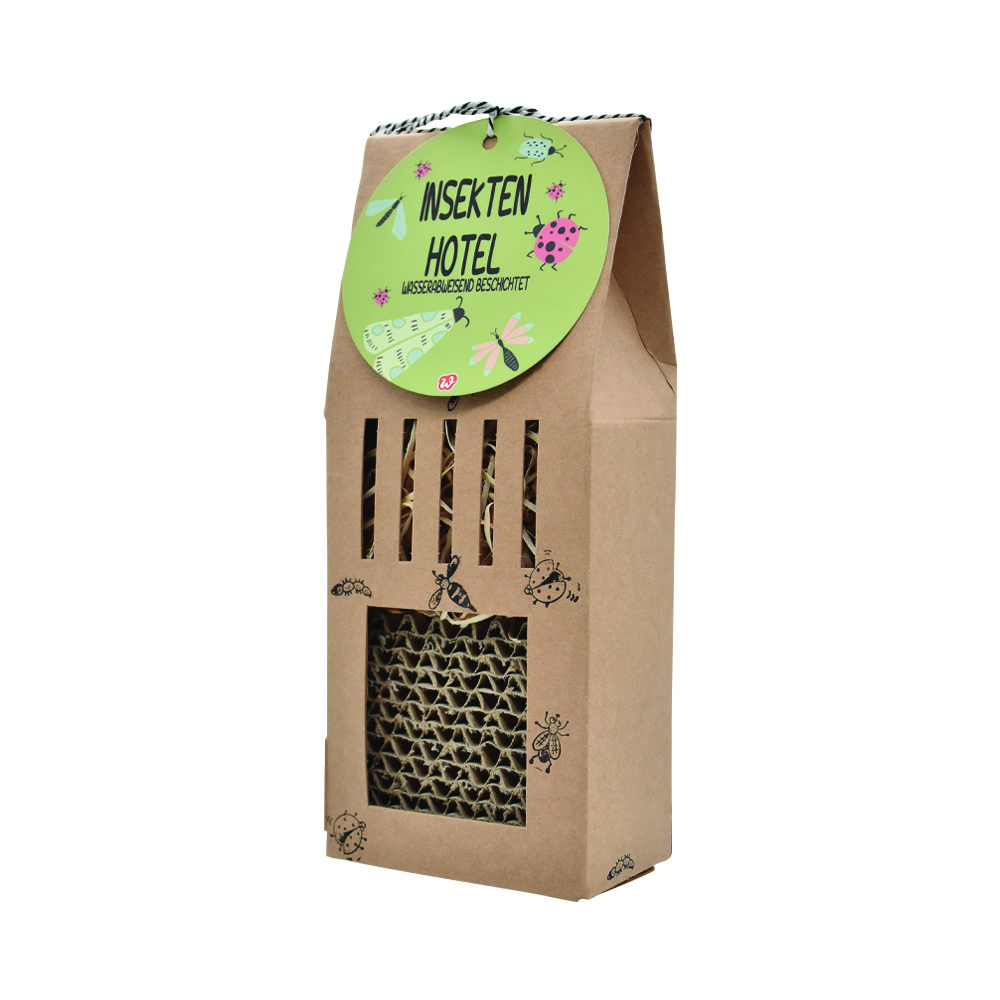 Willkommen in Ihrem Gartenparadies für nützliche kleine Insekten und Bienen! Das Insektenhotel aus recycelter Pappe sind die perfekte Lösung, um unseren geflügelten Freunden ein gemütliches Zuhause zu bieten, das sie verdienen. In einer Welt, in der die natürlichen Lebensräume immer knapper werden, ist es an der Zeit, etwas zurückzugeben und den heimatlosen Insekten und Bienen zu zeigen, dass sie willkommen sind. Die Insektenhotels sind nicht nur umweltfreundlich, sondern auch äußerst funktional. Das robuste Material aus recycelter Pappe ist zwar beschichtet, um den ein oder anderen Regenschauer abzuhalten, aber wir empfehlen dennoch, das Hotel an einem geschützten Ort zu platzieren, um seine Langlebigkeit zu gewährleisten.