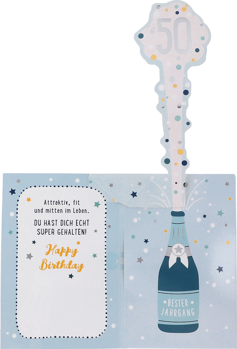 Insgesamt ist die Jump Outs Musikkarte “50 – Korken knallen” nicht nur ein Gruß, sondern ein Erlebnis. Sie vereint das Beste aus Musik, Design und Überraschung und ist damit das perfekte Geschenk für jeden, der das große Fünfzigste gebührend feiern möchte.