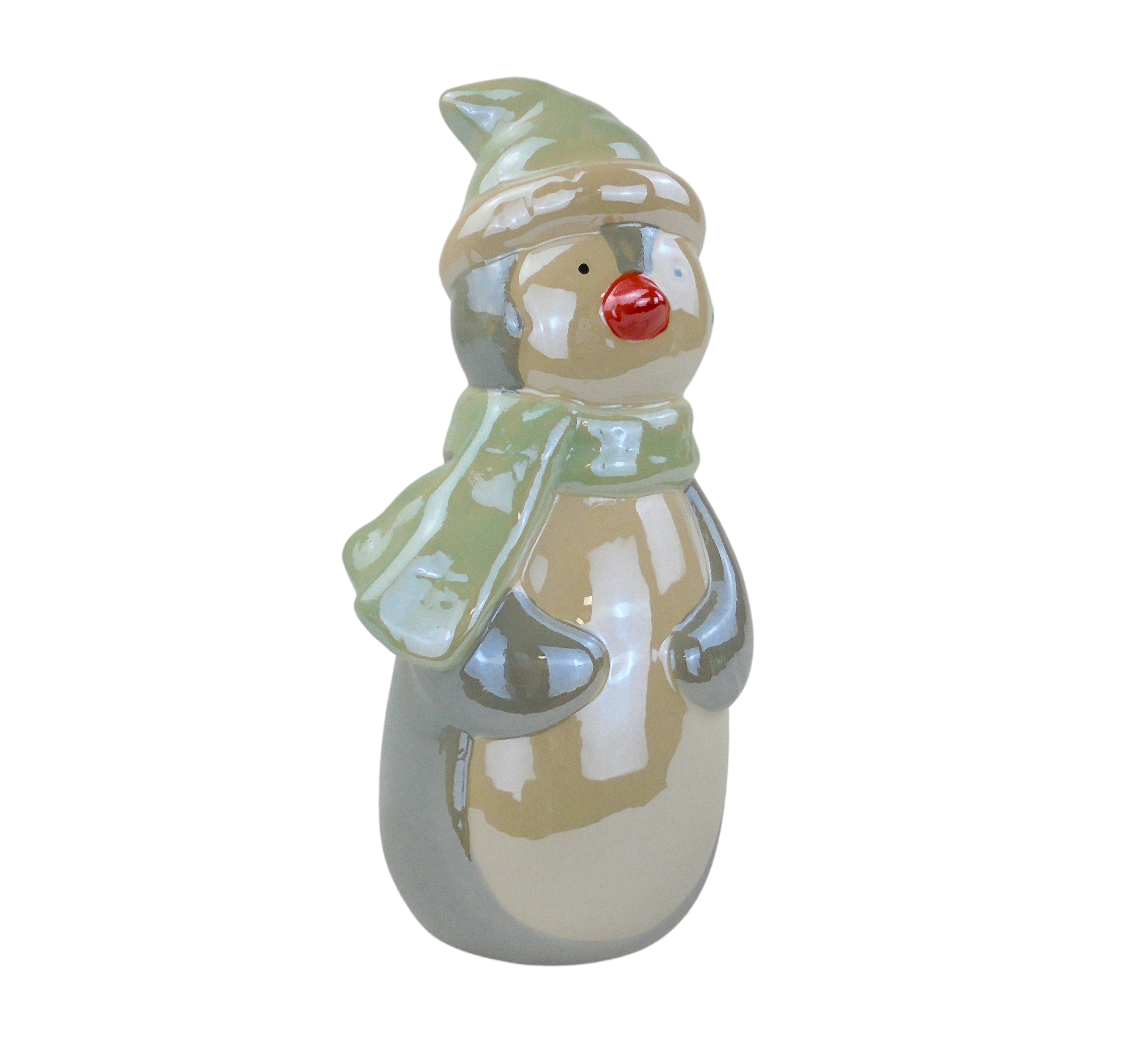 Verleihen Sie Ihrer Weihnachts- und Winterdekoration einen besonderen Charme mit diesem bezaubernden Keramik-Pinguin mit Mütze und Schal. Diese niedliche Figur begeistert mit ihrem winterlichen Outfit: eine lindgrüne Mütze und ein farblich abgestimmter Schal machen den kleinen Pinguin zu einem echten Blickfang, der perfekt zur kalten Jahreszeit passt. Egal, ob auf dem Kaminsims, dem Fensterbrett oder als Teil einer liebevoll gestalteten Tischdekoration – dieser Pinguin setzt überall festliche Akzente.