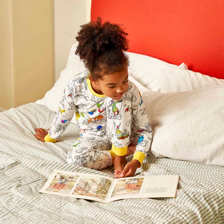 Ob als Geschenk für kreative Kinder, als originelle Idee für Pyjama-Partys oder als Mitbringsel für Übernachtungen bei Freunden oder den Großeltern – der “Märchen zum Ausmalen” Schlafanzug sorgt für Begeisterung. Dank der praktischen, passenden Baumwolltasche mit Kordelzug kann das Pyjama-Set leicht transportiert werden und ist somit auch ideal für Reisen.