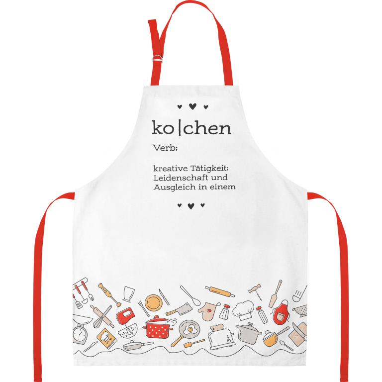 Diese Grillschürze aus 100% Baumwolle mit dem Schriftzug “ko|chen” “Verb: kreative Tätigkeit; Leidenschaft und Ausgleich in einem” aus dem Hause Sheepworld ist perfekt für alle Koch-Begeisterten. In der Farbe Weiß mit der dekorativen Gestaltung des Schriftzuges und dem passenden Motiv von ganz vielen Küchenutensilien, ist diese Kochschürze etwas ganz Besonderes.