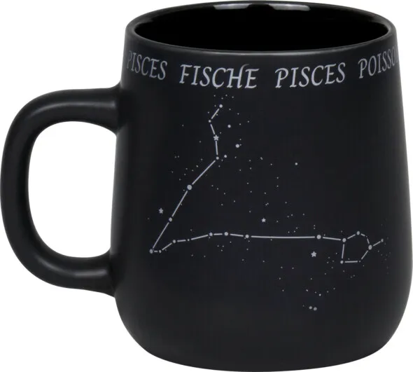 Tauchen Sie ein in eine Welt voller Fantasie, Einfühlungsvermögen und kreativer Energie mit dem Könitz Becher “Sternzeichen – Fische”. Diese einzigartige Tasse besticht durch ihre elegante Form, die oben etwas schmaler und unten angenehm weit gestaltet ist, und bietet ein harmonisches Trinkerlebnis. Die matte schwarze Außenseite kombiniert sich perfekt mit der glänzenden Innenseite und macht jeden Schluck zu einem besonderen Moment.