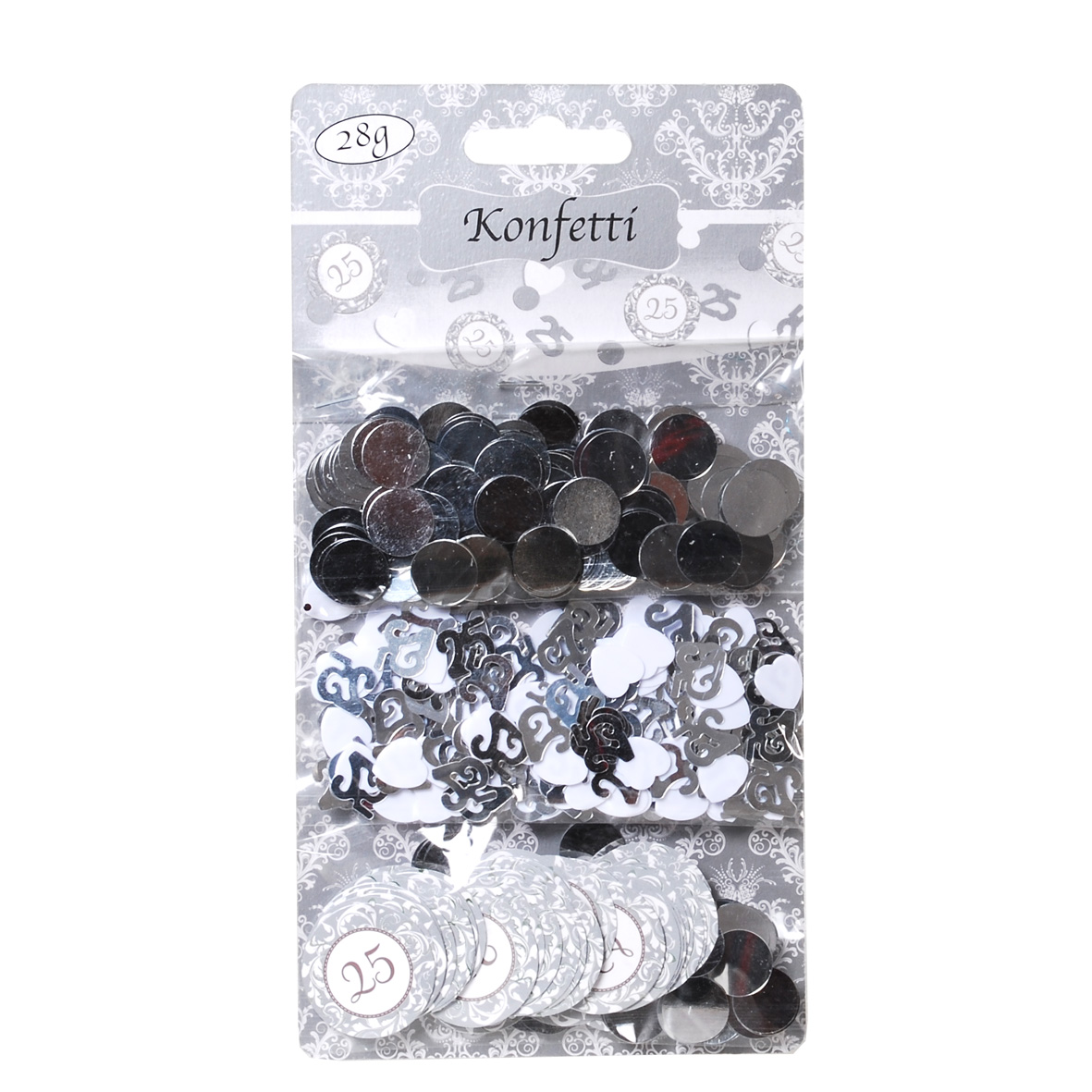 Konfetti-Mix mit Zahl “25” Weiß/Silber: Zauberhafte Tischdekoration für unvergessliche Momente