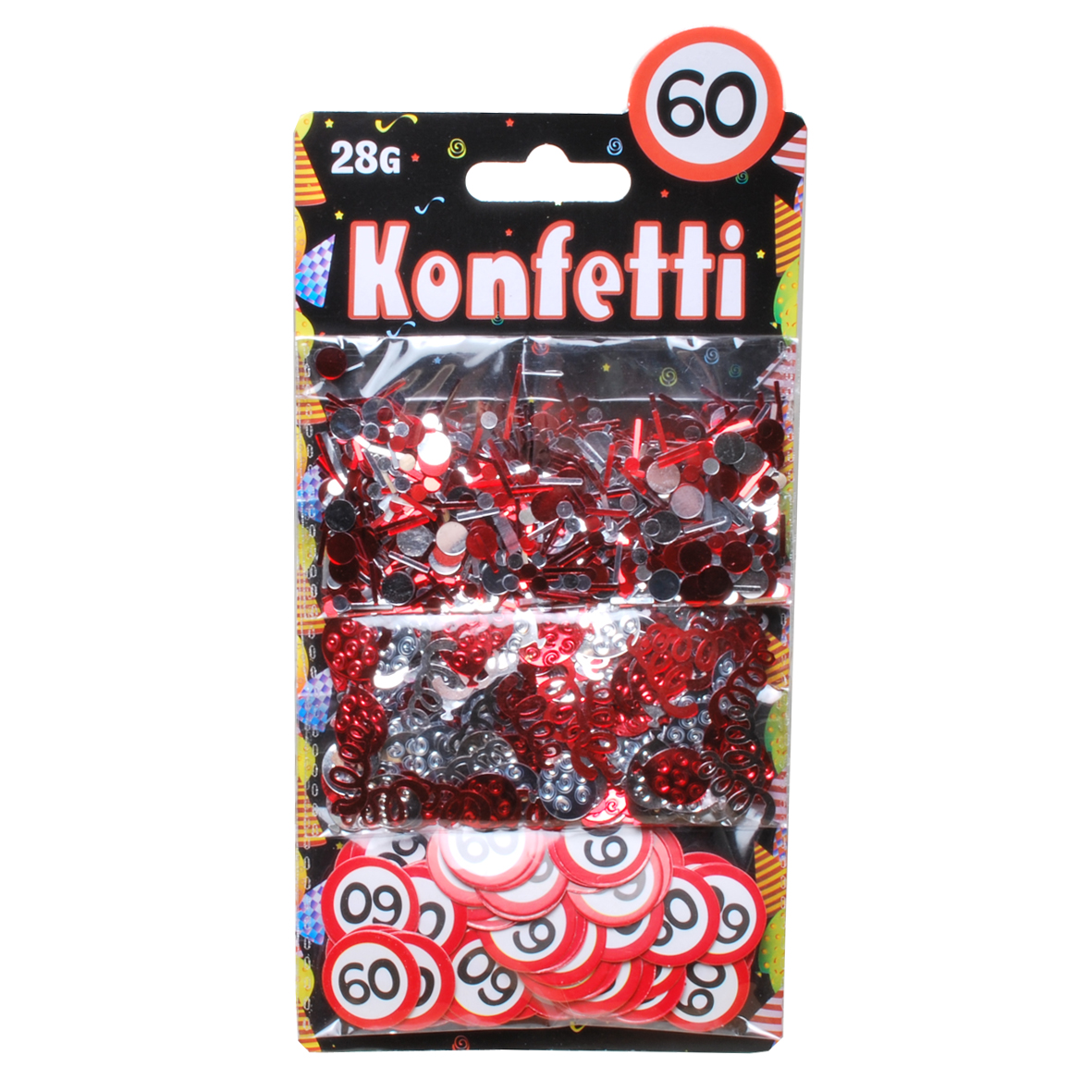 Das Konfettiset enthält jeweils die Motive in Form von einem Verkehrsschild mit dem Aufdruck “60”, außerdem rot/silberner Ballon-/Luftschlangen-Mix und darüber hinaus verschieden-großes Kreis- und Streifen-Konfetti. Es besteht aus Kunststoff und Papier/Pappe und ist bestens geeignet, um das Geburtstagskind entsprechend zu würdigen. Die Party kann losgehen!