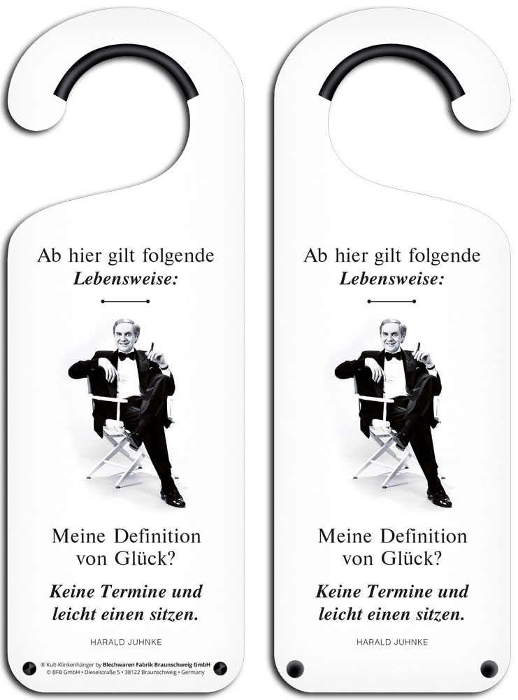 Dieser dekorative Kult-Klikenhänger ist hauptsächlich weiß mit dem Schriftzug Ab hier gilt folgende Lebensweise: Meine Definition von Glück? Keine Termine und leicht einen sitzen und kann einfach an die Türklinke gehängt und gedreht und gewendet werden, wie man es gerade braucht.